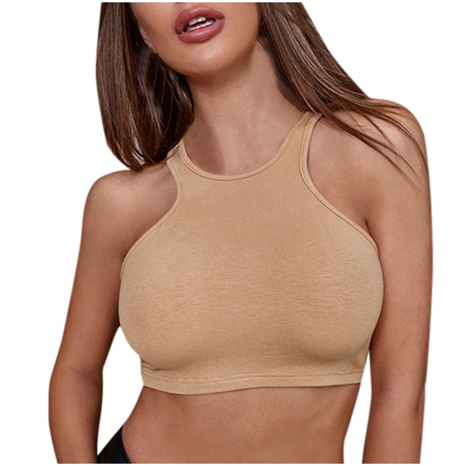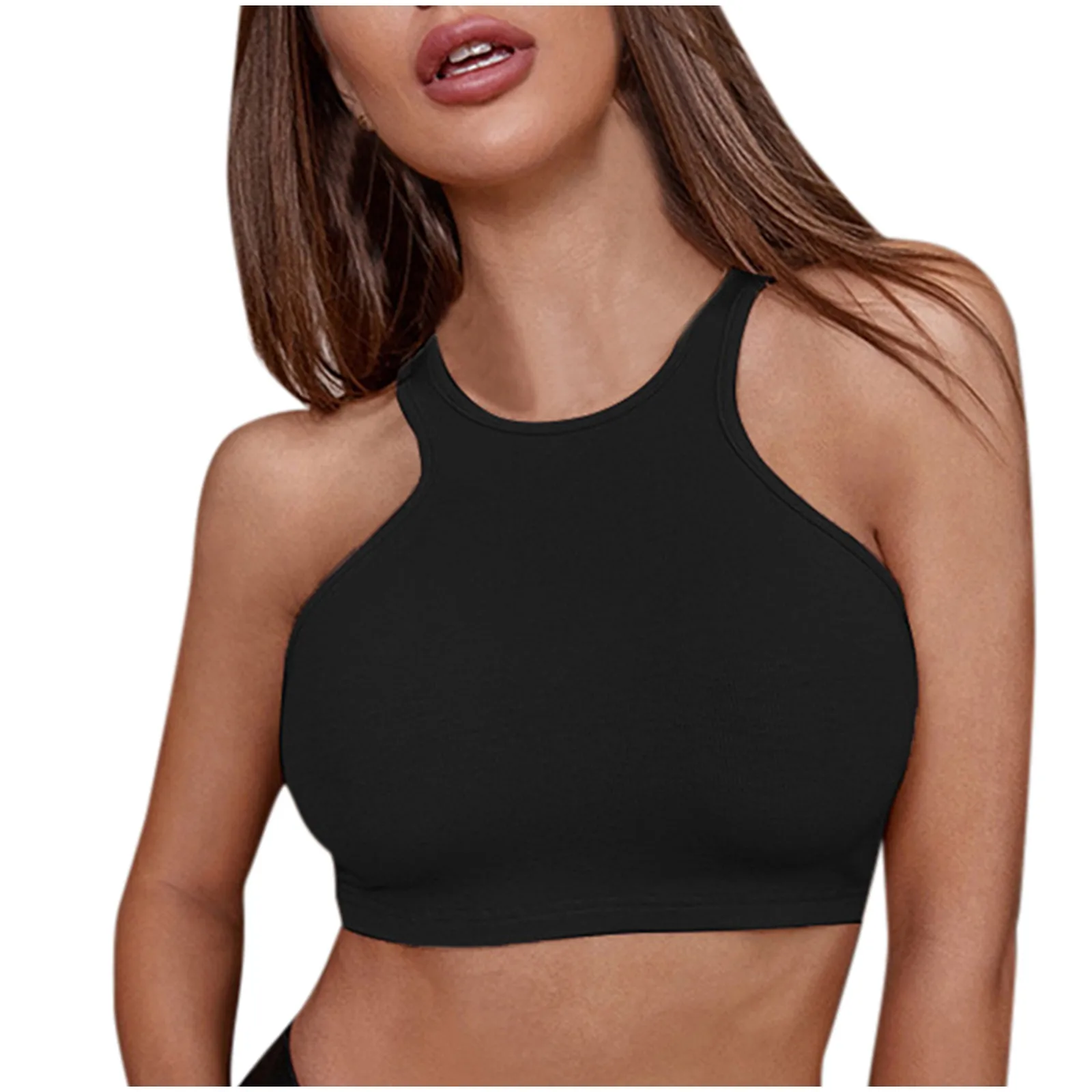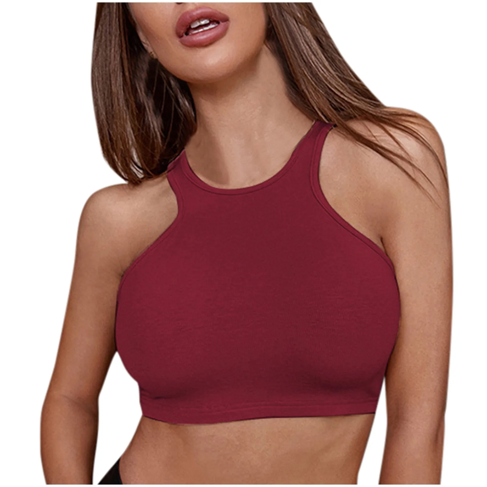 Летние Женские однотонные Цвета фитнес топы на бретельках без рукав...