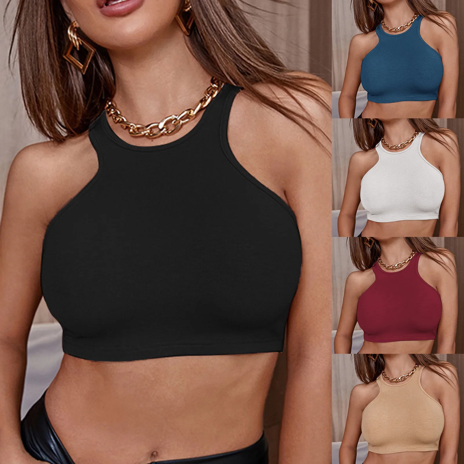 Летний модный женский топ, пикантный укороченный топ без рукавов с ...