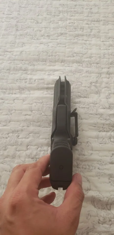 Полученный, однако, не был протестирован, обнаружился, что зажим, удерживающий ремень, немного тусклый, подвержен опасности, когда вынимается кобура.