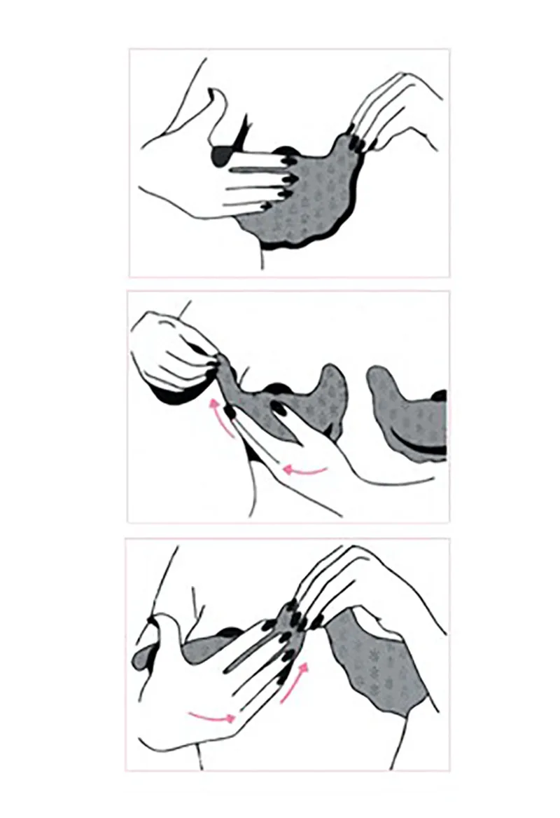 2 одной рукой удерживайте поддержку груди на удовлетворительный рост и аккуратно Приклеивайте ее к нижней части груди, начиная с нижней части нагрудной подушки, И вставляйте их по одному. Затем снова проверьте рост и направление груди и, наконец, почините изделие