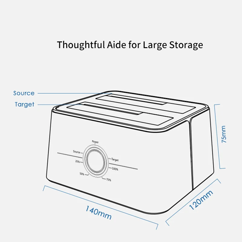 Автономная функция клонирования одной кнопкой обеспечивает быстрое и безопасное дублирование по секторам жестких драйверов без хост-компьютера. Док-станция с двумя отсеками получает доступ к обоим дискам одновременно и использует внешнюю мощность, чтобы обеспечить стабильную работу драйвера и замену в процессе работы устройства. Вам не нужно перезагружать компьютер.