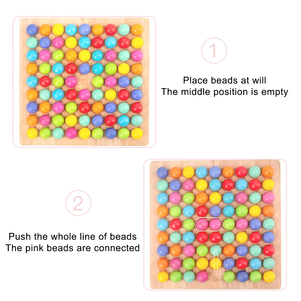 Средняя позиция свободна; 2. Нажмите весь ряд бусин, чтобы соединить розовые бусины. После нескольких шагов мышления, измените пассивность на активные идеи; 4. После устранения бусин, вечерние, с большим количеством бусин выиграют.
