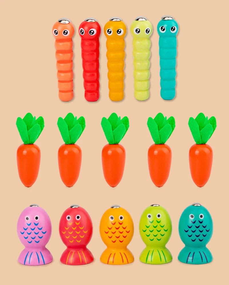 Деревянная игрушка Поймай червячка и магнитные игры в рыбалку, магн...