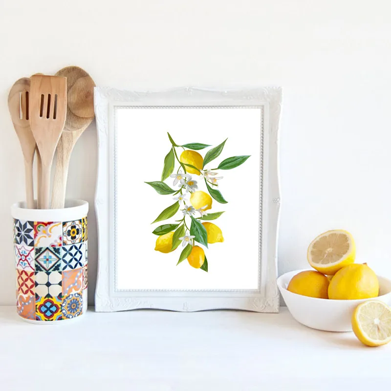 Лимон Художественная Картина на холсте плакаты принты лимон на ветке фрукты картины для столовой кухни комнаты настенный художественный Декор