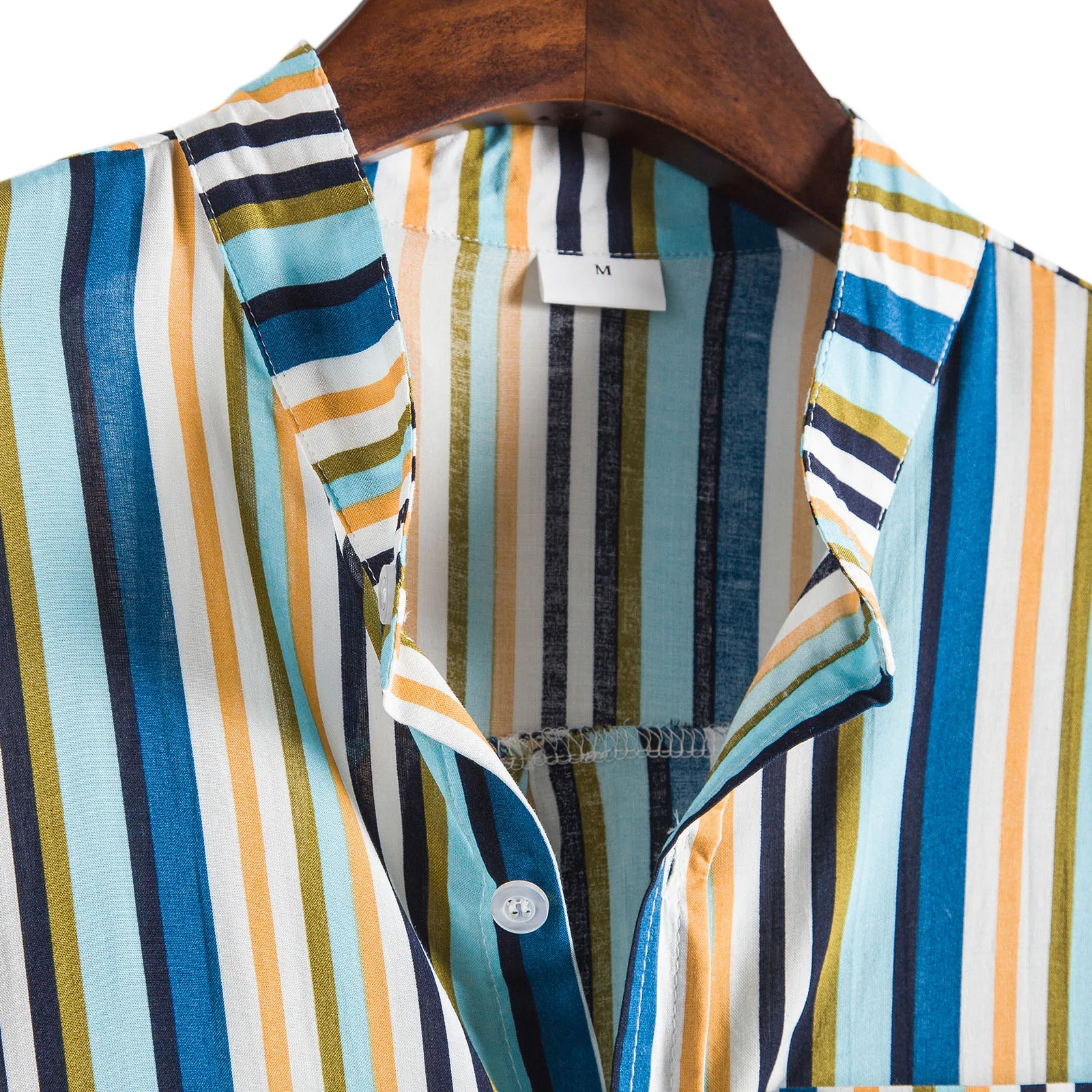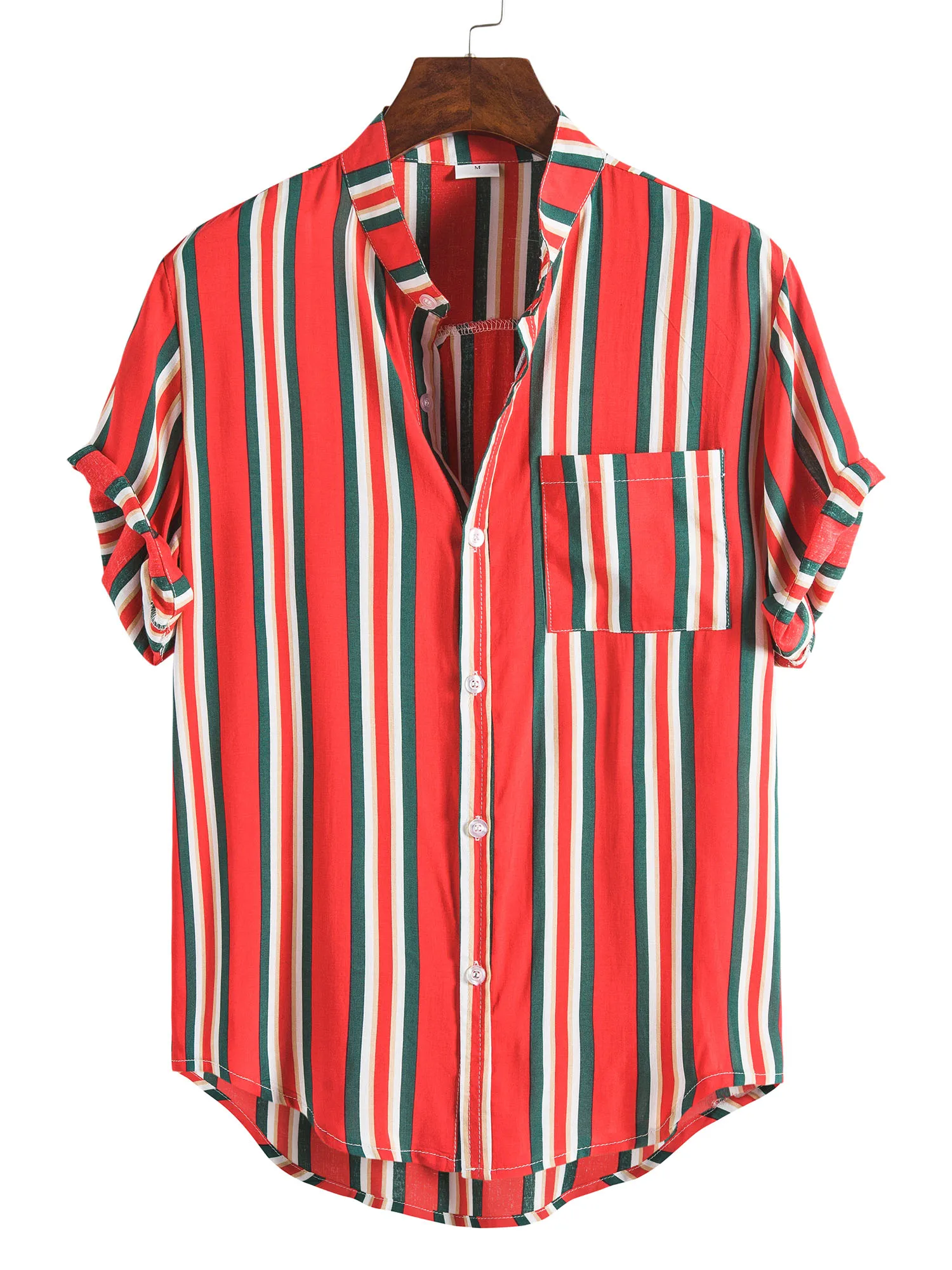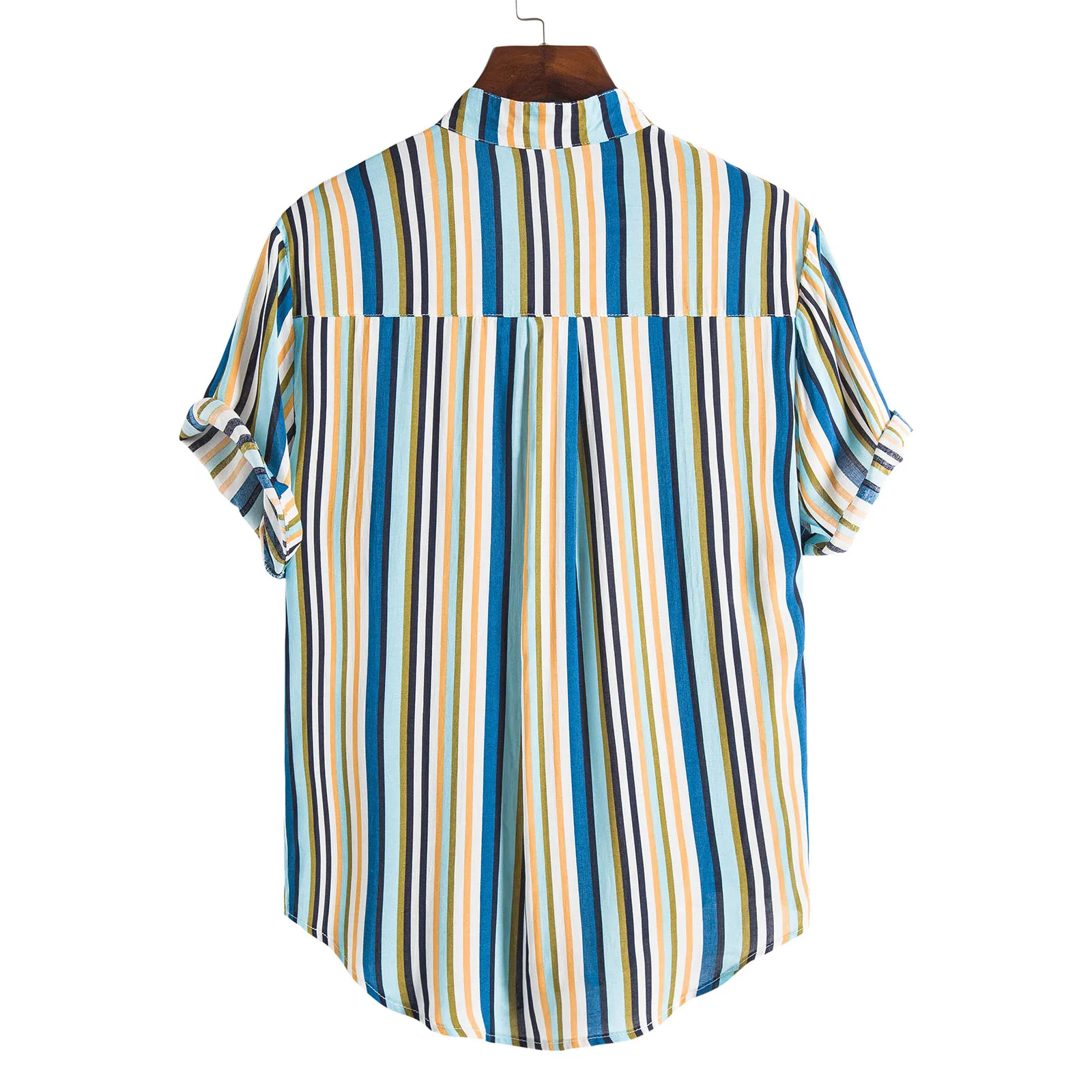 Мужская рубашка в полоску, рубашка с отложным воротником и коротким рукавом, темно-синяяжелтаякрасная, для лета и осени