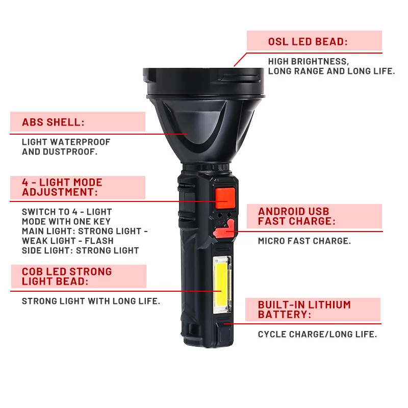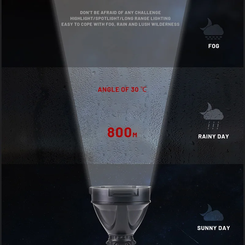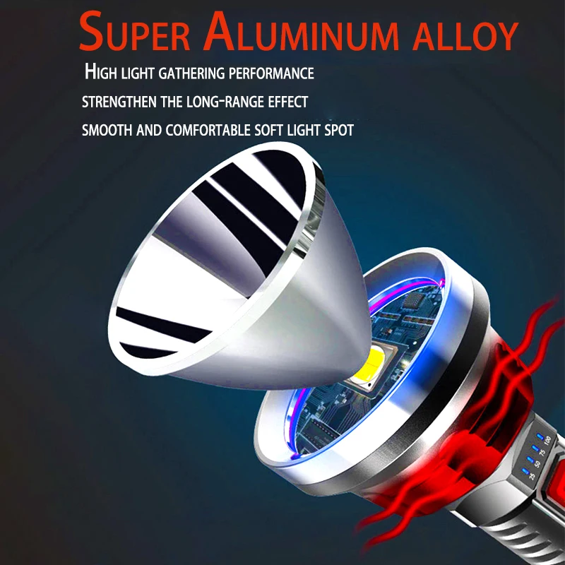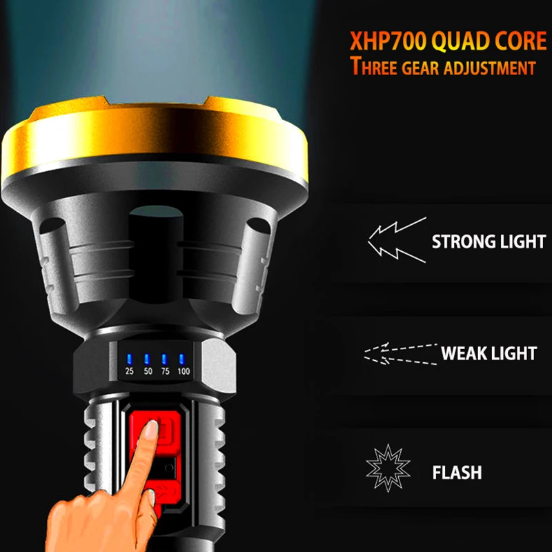 Фонарик P700 Core Power со встроенным аккумулятором, водонепроницаемый тактический Ультраяркий светильник ильник с большим радиусом действия, 3 режима работы, зарядка через USB