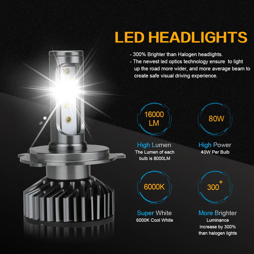 Zdatt автомобильные светодиодные фары H1 HB3 HB4 H11 H4 H7 led лампы Canbus 6000K 80W Turbo 12V 16000LM 9005 9006 авто противотуманные фары