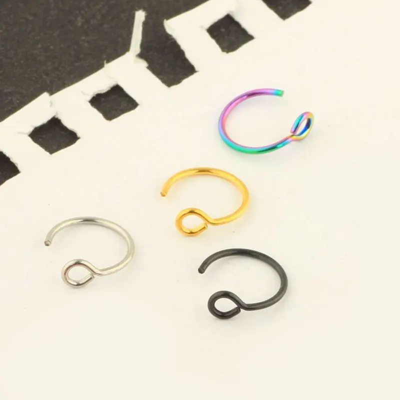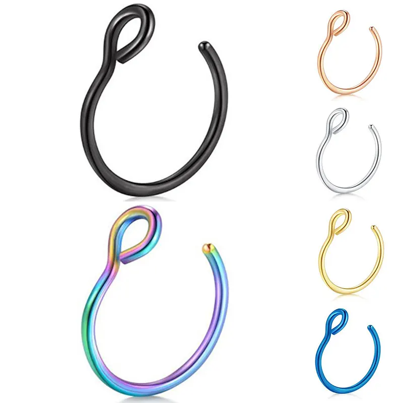 1 шт. кольца в нос шпильки поддельный пирсинг кольцо панк поддельный клип на нос кольцо поддельный серьги, Надеваемые На ушной хрящ ювелирный пирсинг для тела ювелирные изделия серебро