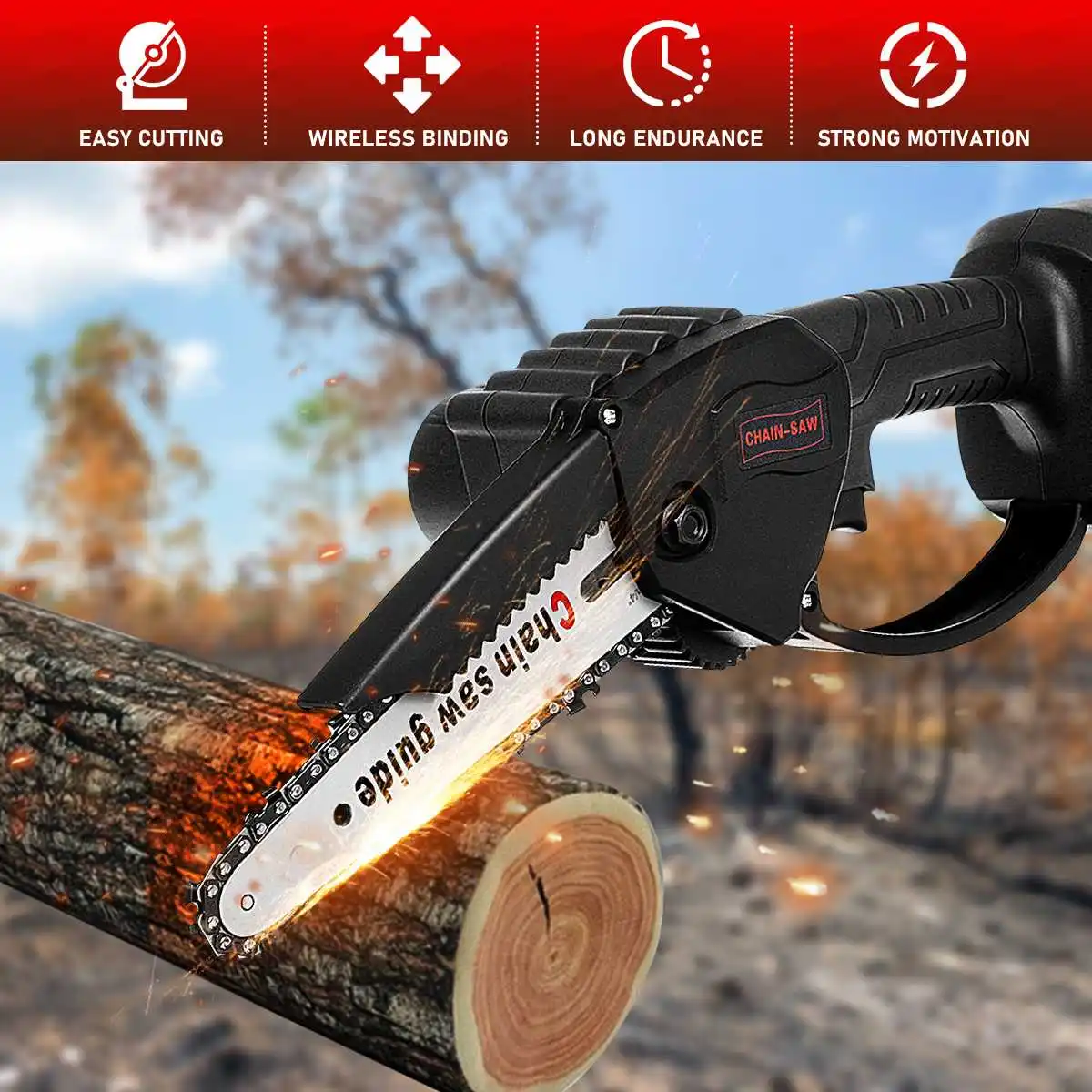 Электрическая цепная пила, 6 дюймов, 1200 Вт, беспроводная цепная пила для обрезки садовых деревьев, инструмент для деревообработки, аккумулятор 21