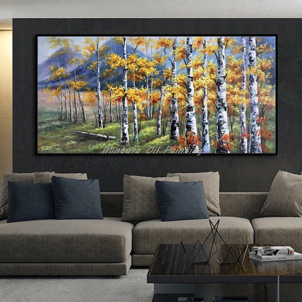 Mintura картина на стену для Гостиная масло Картины на канва Ручная роспись красивые березы Декор для дома с лесным пейзажем Wall Art без рамки