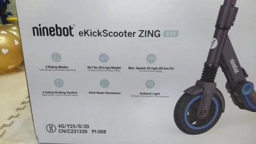 Электросамокат Ninebot KickScooter E10 скорость 16 кмч, нагрузка 55 кг, запас хода 10 км40 мин, 150 Вт, вес 8,5 кг