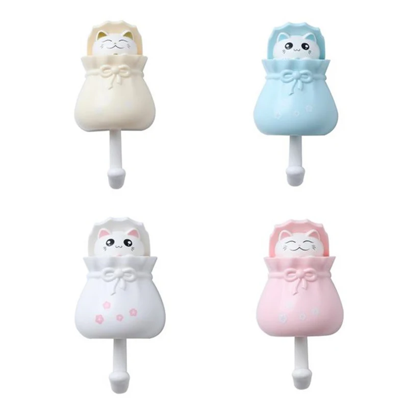 Декоративные крючки с мультяшным котом, держатель для ключей, настенная клейкая вешалка для одежды вешалка для шляп, аксессуары для органайзера