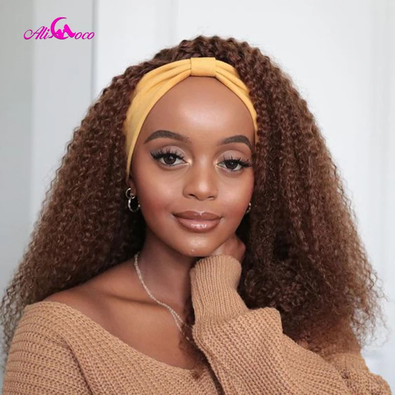 Омбре цвет парик с головной повязкой монгольский афро кудрявый парик цвет 4 человеческих волос парик для черных женщин Али Коко
