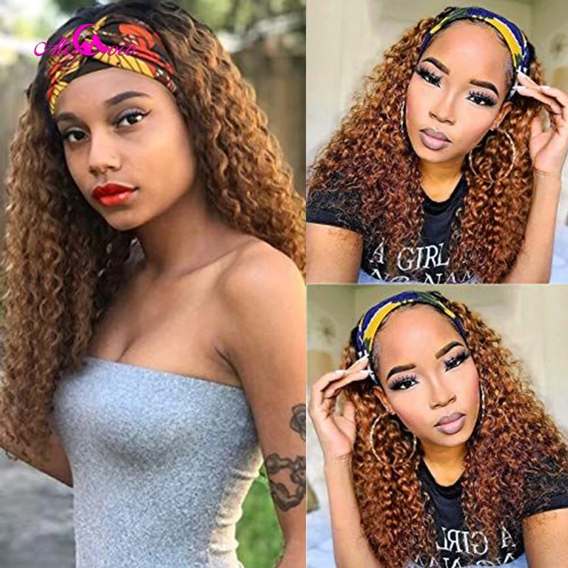 Эффектом деграде (переход от темного к Цвет парик с головной повязкой монгольский афро кудрявый парик 4 цвета парики из натуральных волос с Африканской структурой, Для женщин Али Коко