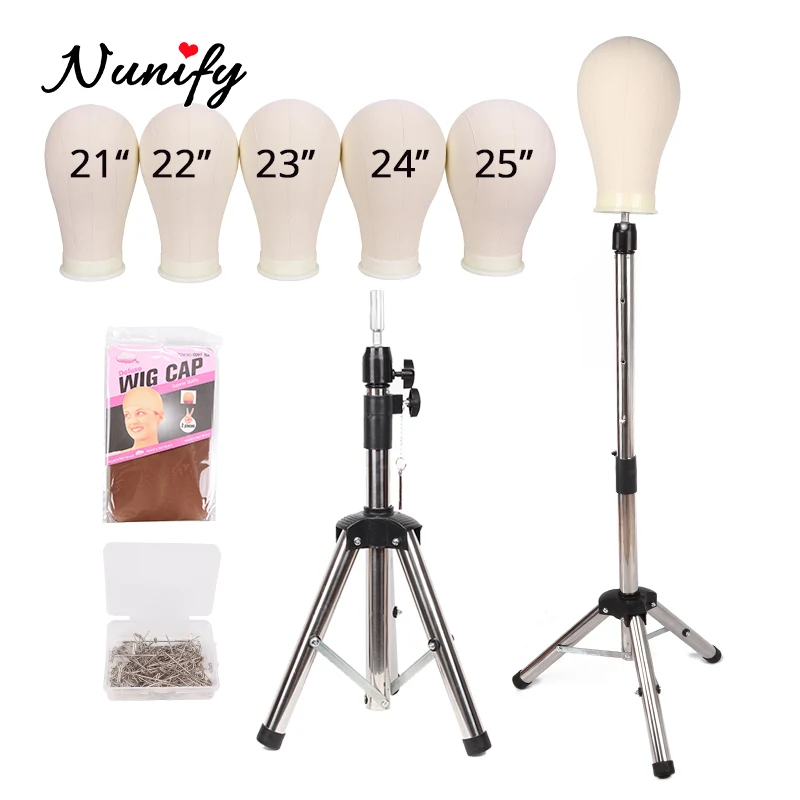 Черный Штатив для парика для укладки волос салон штатив-Трипод подставка для париков с манекен головы парусины и Т-образной шпильки парик аксессуары для инструментов