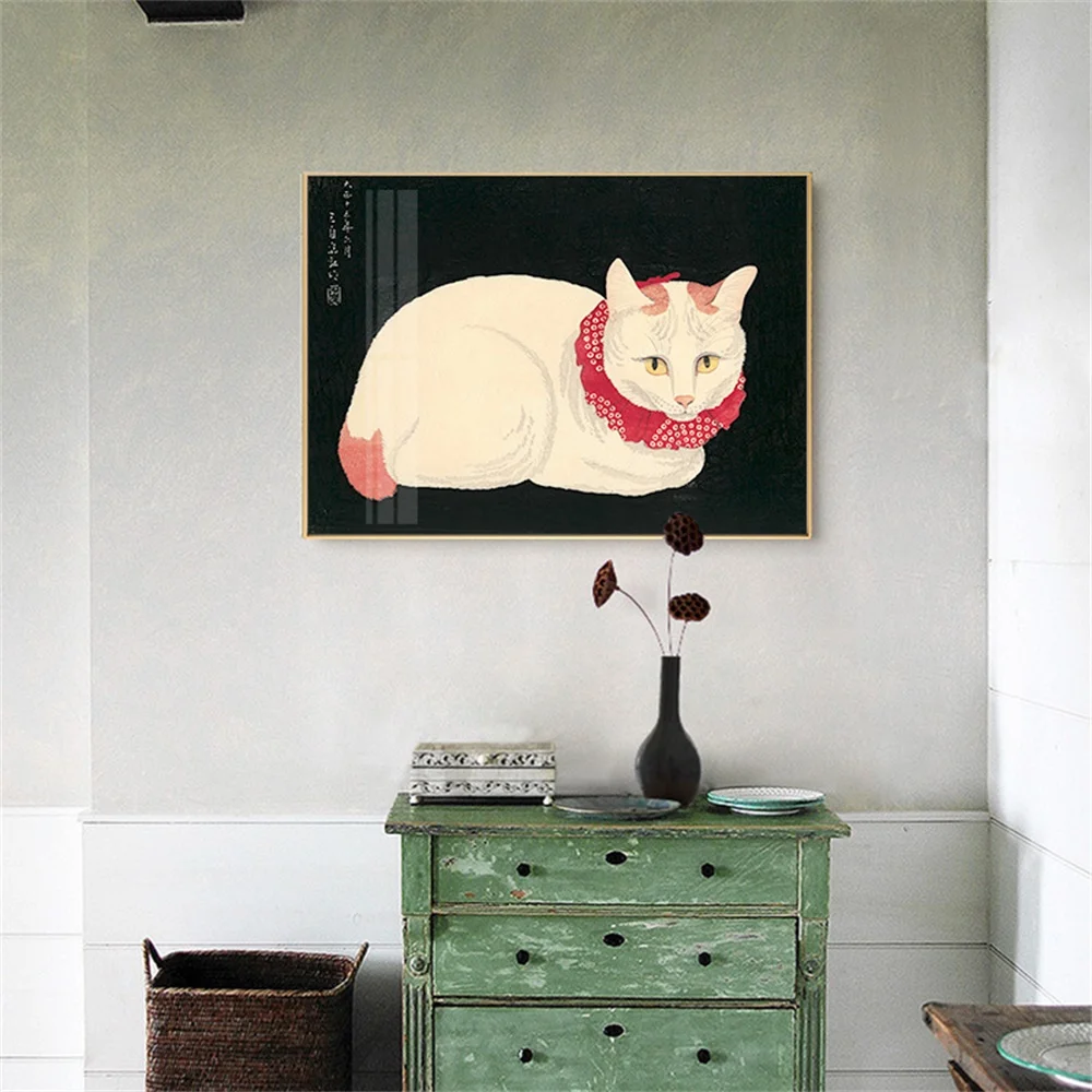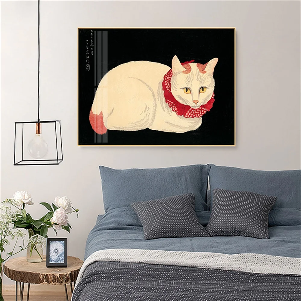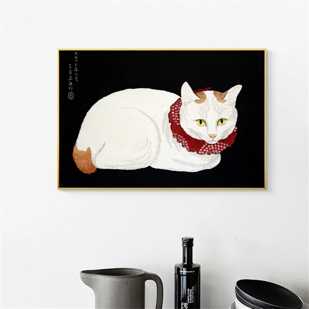 Винтажная животная Картина на холсте укиё японский Бриз кот плакат Настенная картина Ретро Декор для дома Декор для комнаты эстетический Декор