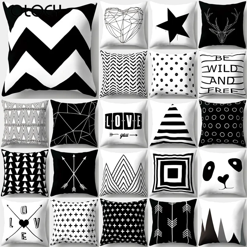 Черно-белая наволочка с геометрическим рисунком, декоративная наволочка из полиэстера для диванной подушки, декоративный чехол для диванных подушек 45x45