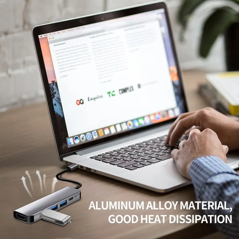 Хорошая алюминиевая отделка. Отлично работает. Я использую концентратор для подключения монитора через HDMI и принтер, клавиатуры и мыши-через USB. Все они работают безупречно. + Концентратор имеет дополнительный порт type-C для подключения зарядного устройства. Таким образом, все периферийные устройства (и зарядное устройство) подключаются к ноутбуку с помощью только одного порта thunderbolt.