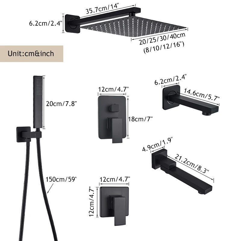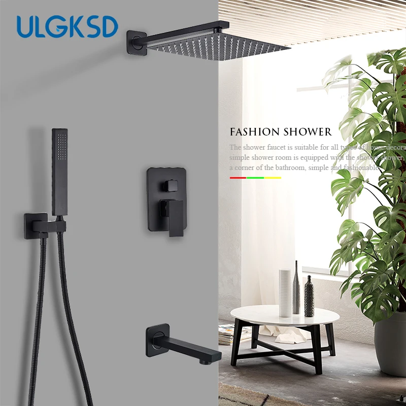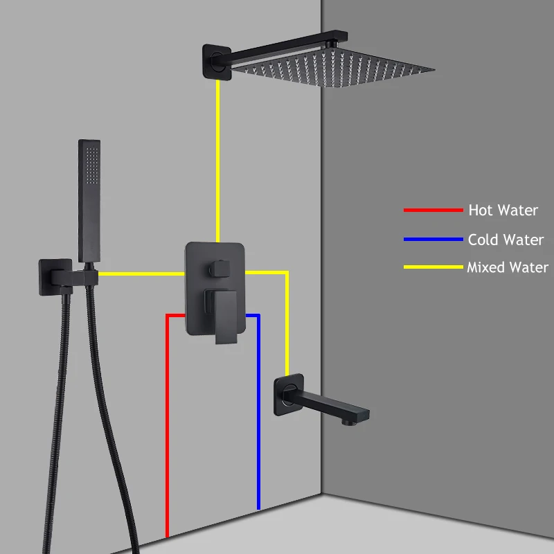 Матовый черный скрытый набор для душа, модный Европейский новый комплект смесителя для душа, лейка для тропического душа, Поворотный Смеситель для ванны на 2/3 направлений