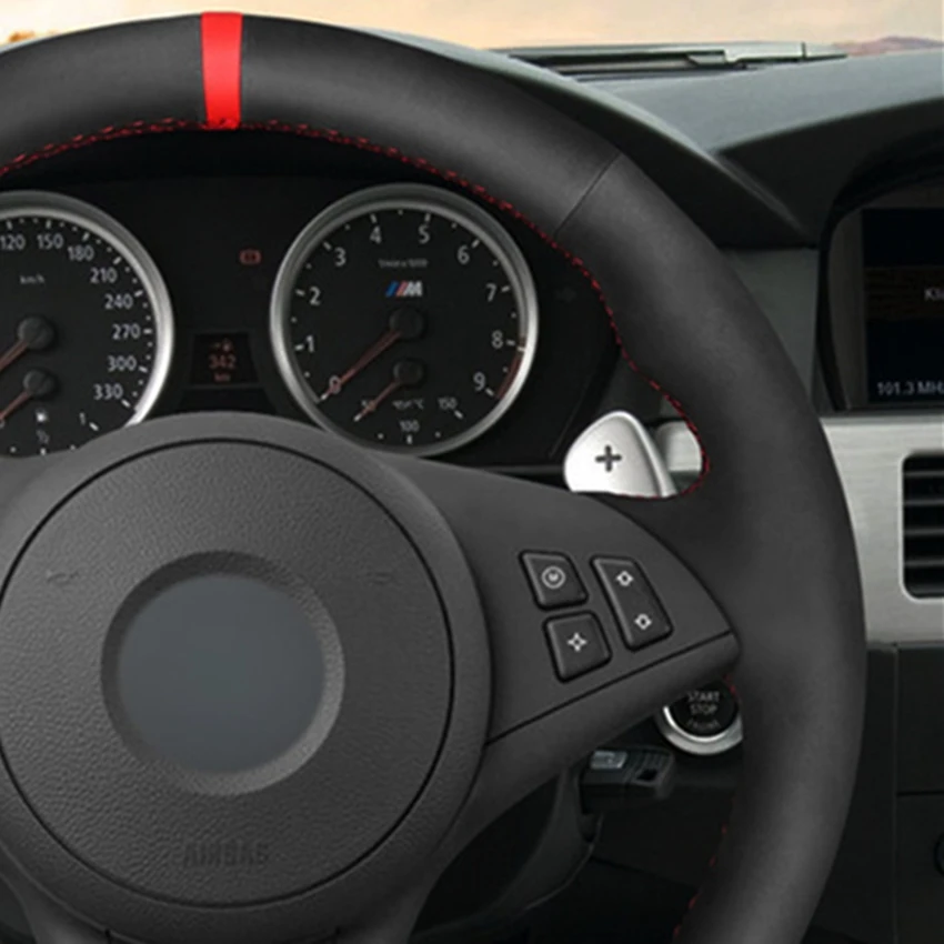 Ручной работы черная замша чехол рулевого колеса автомобиля для BMW M5 E60 E61 (универсал) 2005-2010 M6 E63 E64 2005-2010