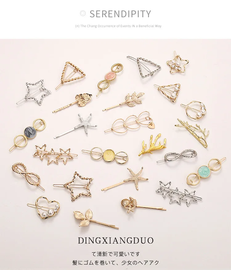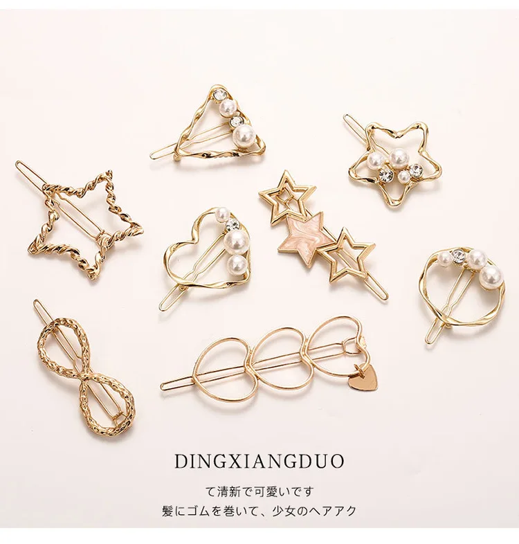 Заколки для волос с жемчугом женские, сплав, геометрический дизайн, 1 шт.