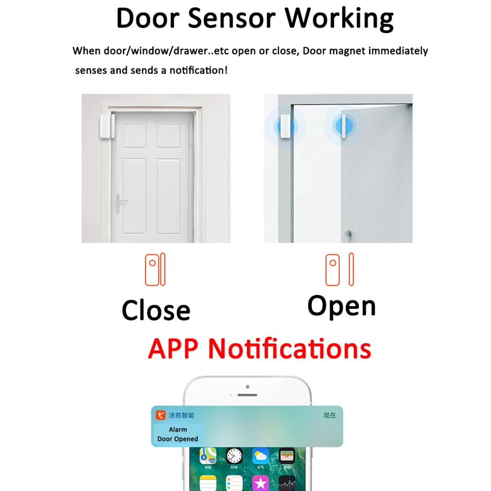 Беспроводной детектор дверейокон Tuya Smart Life, оповещения от приложения, датчик безопасности, поддержка Alexa, Google Home, концентратор не нужен