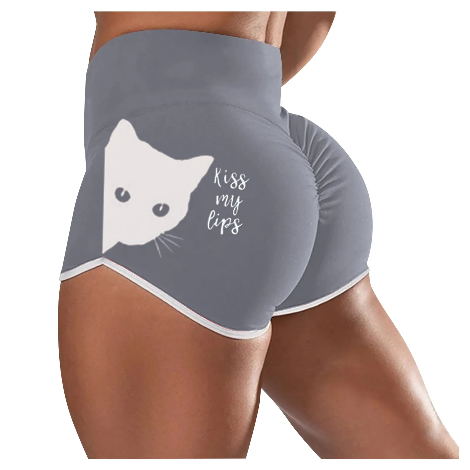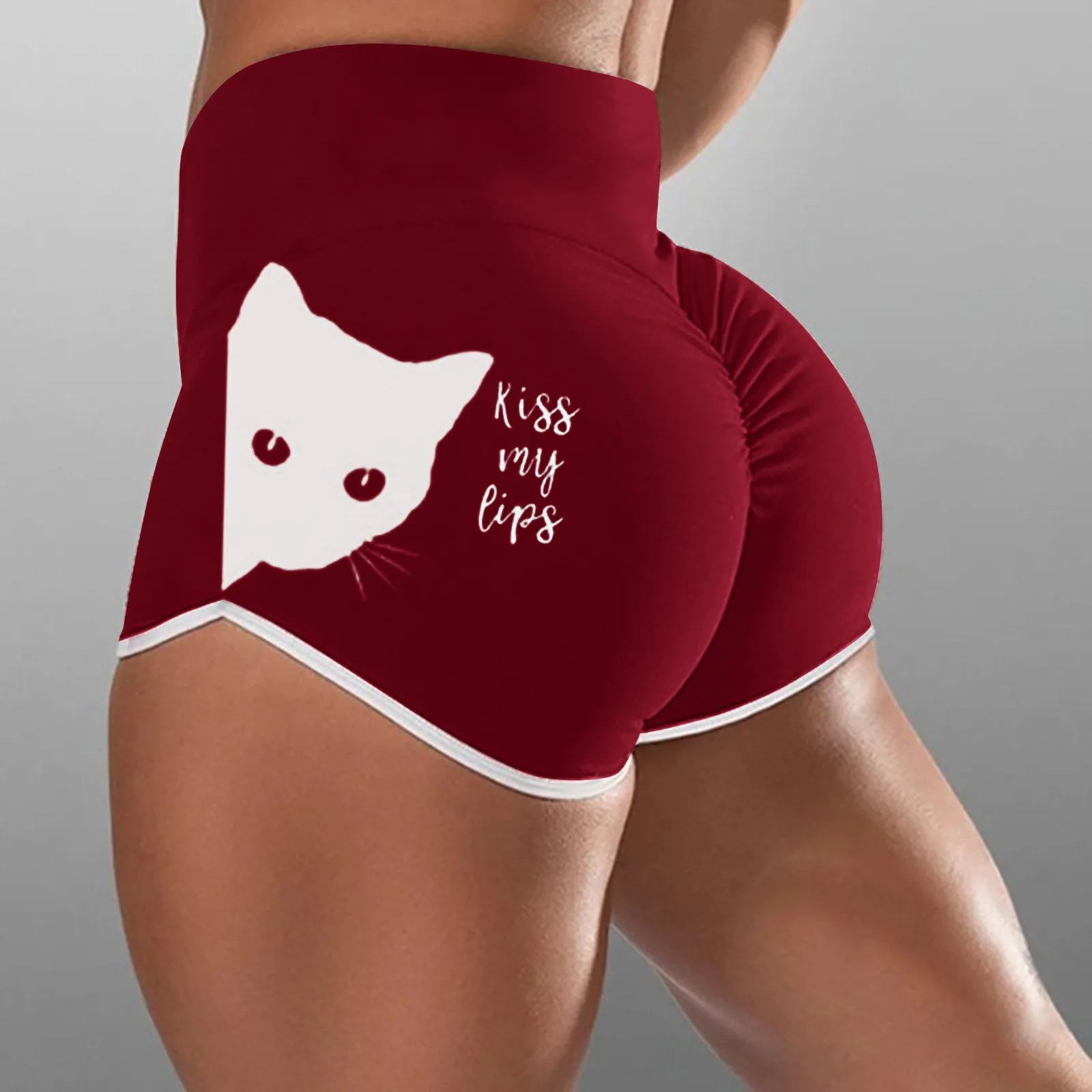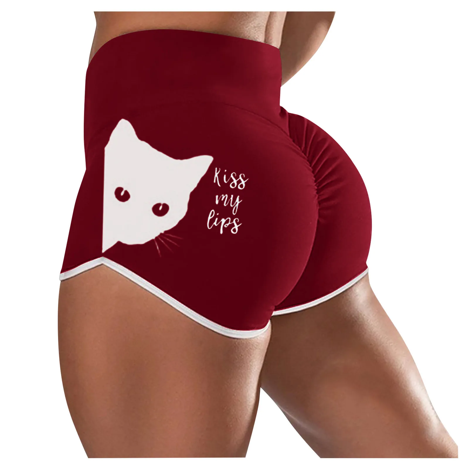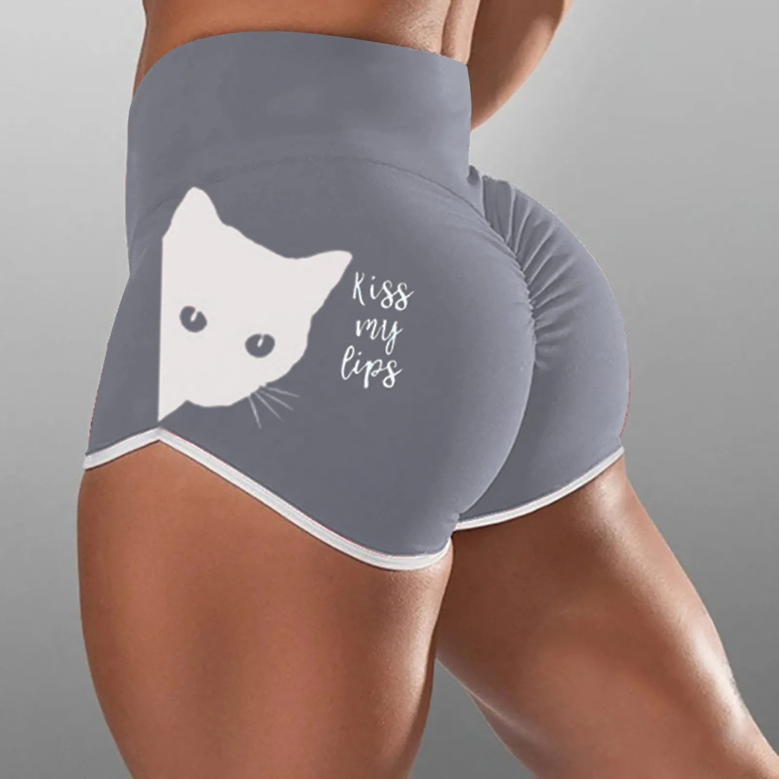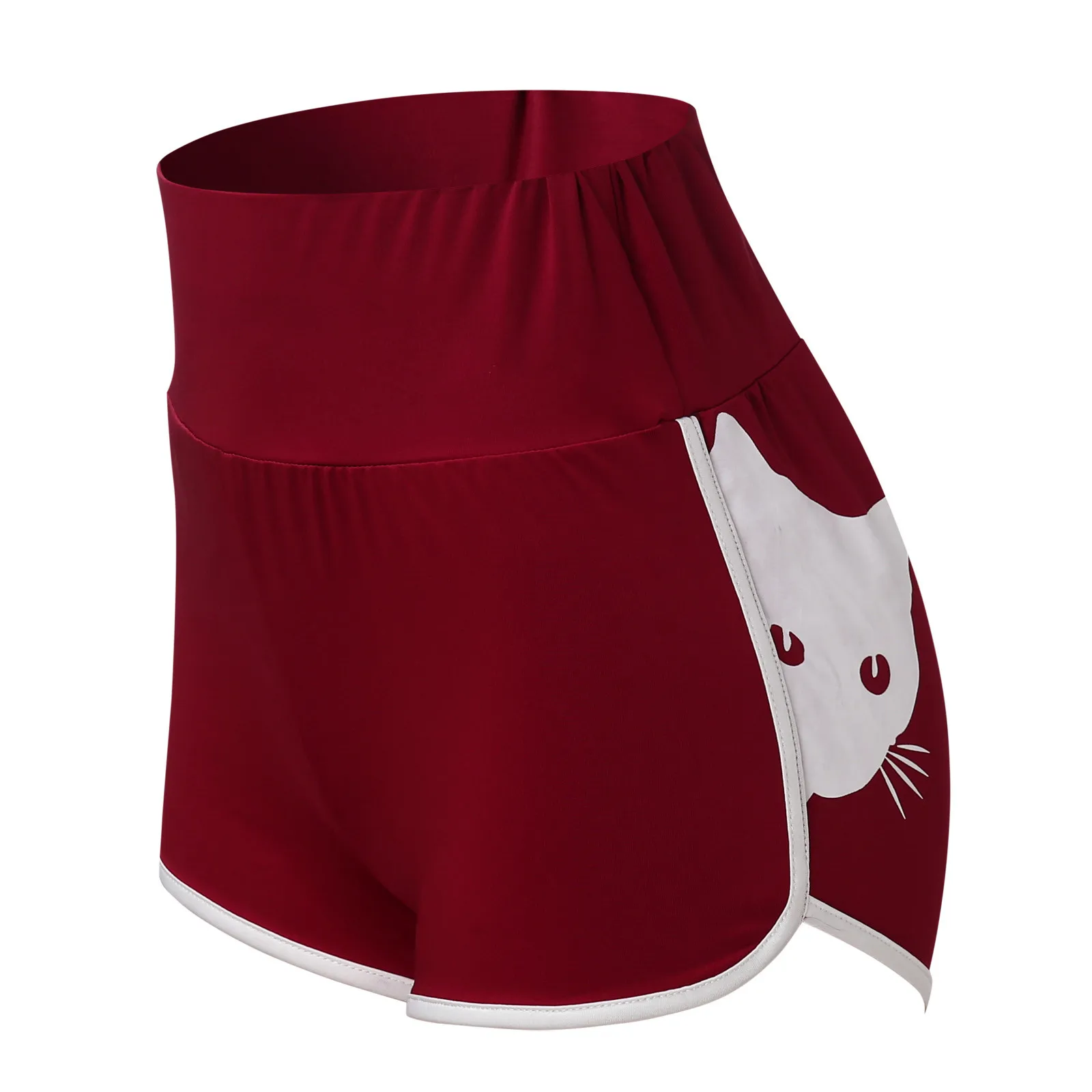 Pantalones De Mujer; Милый рисунок с кошкой; С высокой талией шорты...