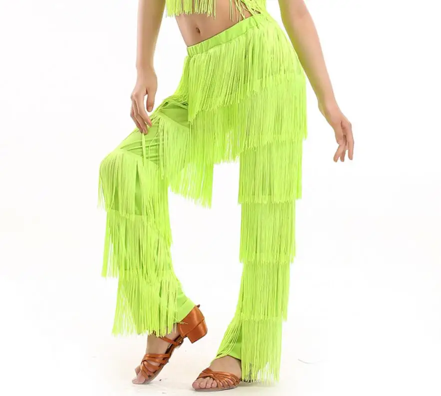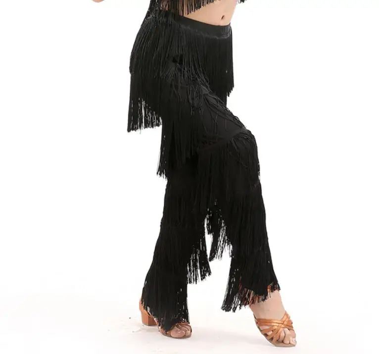 Новое поступление, костюмы для латиноамериканских танцев Samba с бахромой для девушек, Бальные Танцевальные штаны с бахромой, костюм для взрослых, платье для бальных танцев