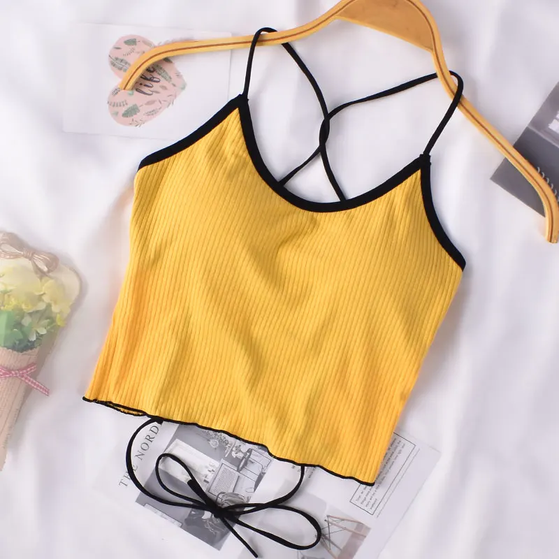 Кроп-Топ женский на бретельках, топы на завязках летний, 2020