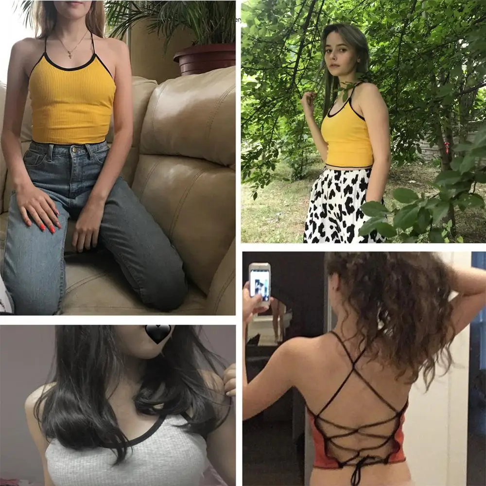 Женские топы с лямкой на шее, бандажные сексуальные укороченные топ...