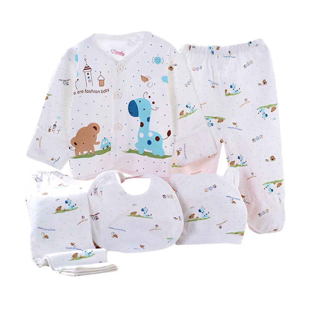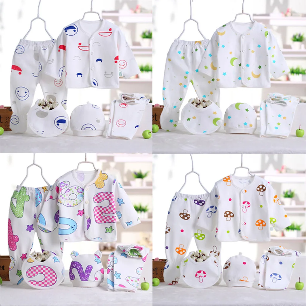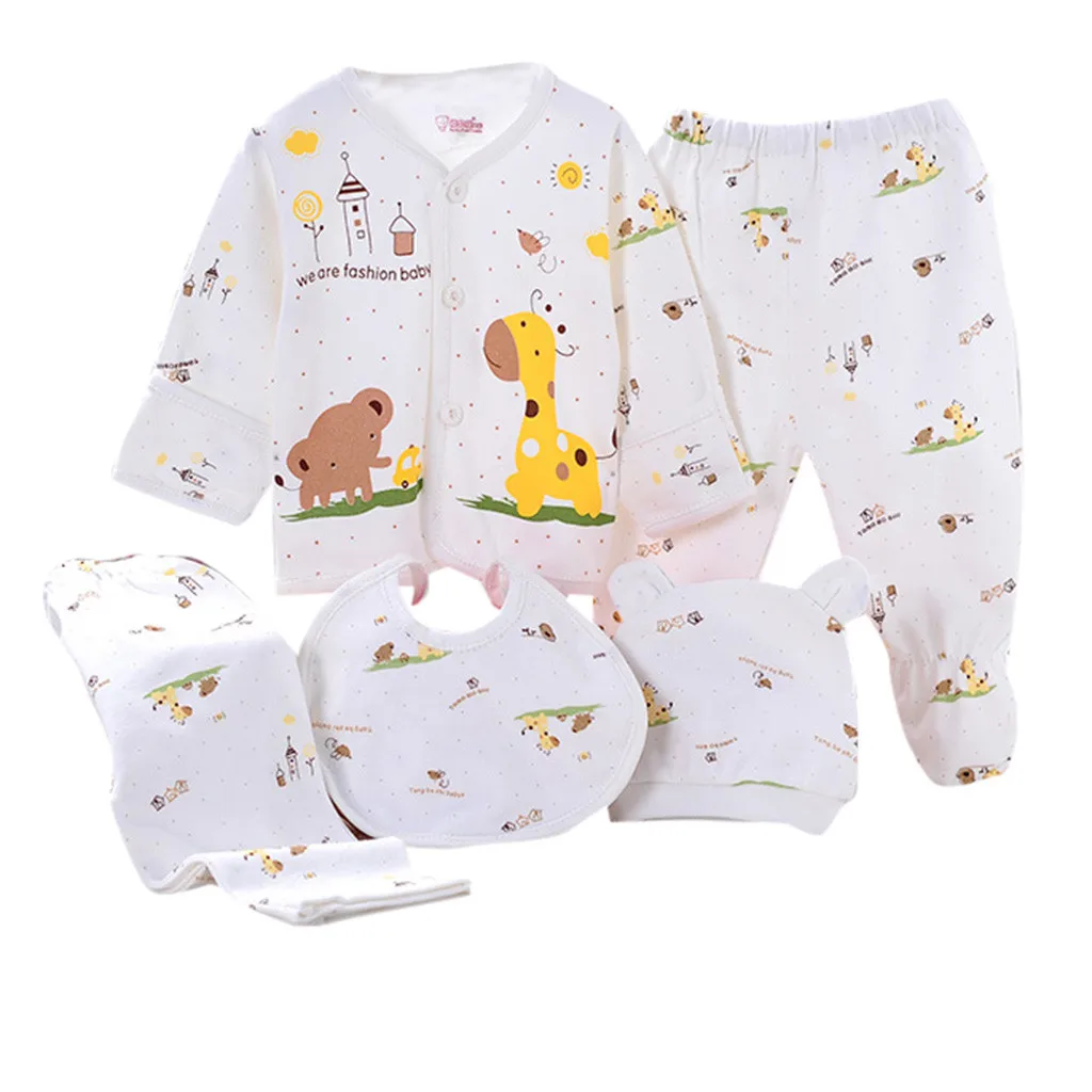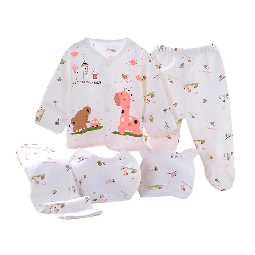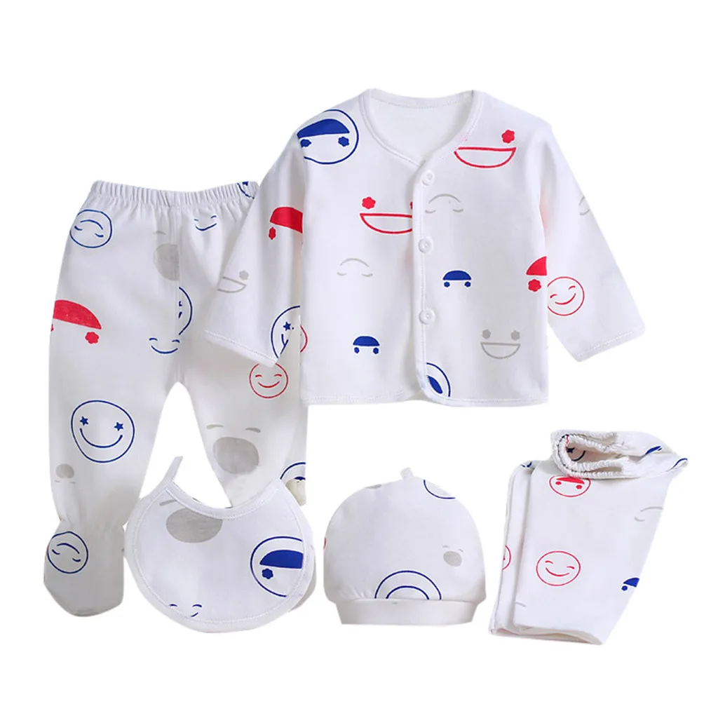Одежда для новорожденных, костюмы для малышей, комплекты одежды для мальчиков и девочек, топы, штаны, нагрудники, шапки, комплект одежды для девочек, 5 шт.компл.
