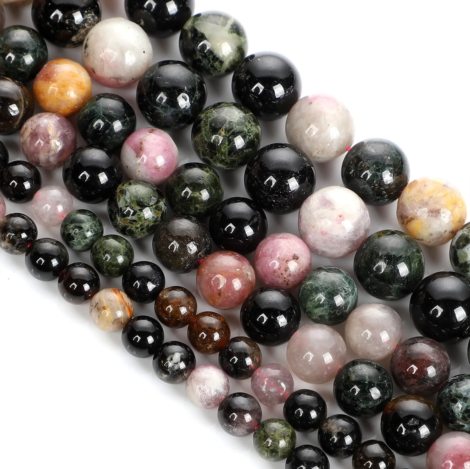 Бусины из натурального камня, разноцветные турмалиновые круглые бус...