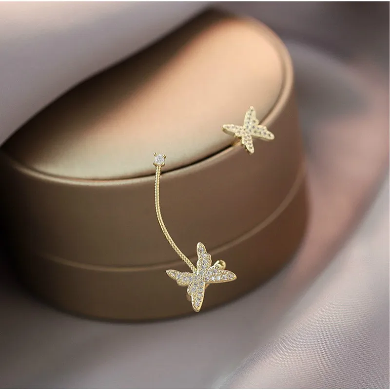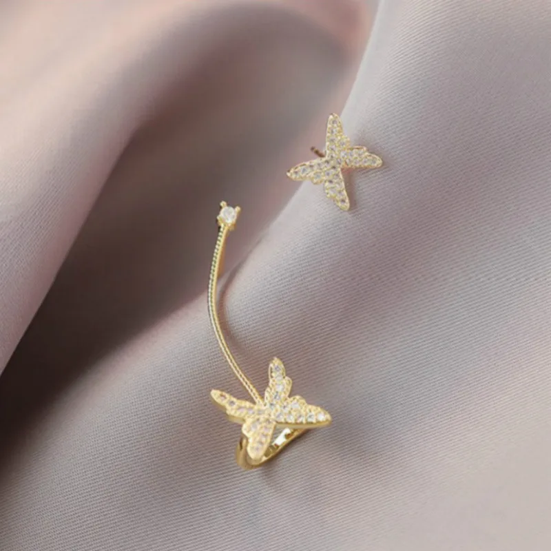 Женские асимметричные серьги-кисточки с длинной звездой, маленькие серьги-капельки в Корейском стиле, 2021 зажимов без отверстий, аксессуары для ушей