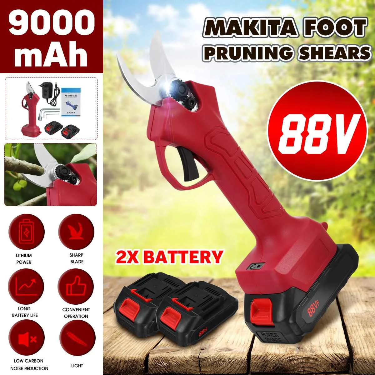 Беспроводной секатор 500 Вт 88 в, 9000 мАч литий-ионный аккумулятор, электрические ножницы для обрезки фруктовых деревьев, бонсай, резак для обрезки веток