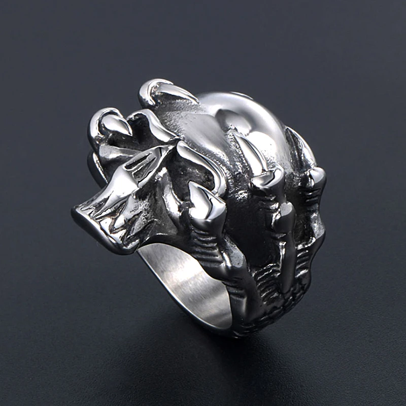 Мужское кольцо в стиле панк, кольцо из нержавеющей стали в стиле хип-хоп с когтями дракона и черепа в стиле рок, готическое кольцо с когтями дракона, подарочное ювелирное изделие, оптовая продажа