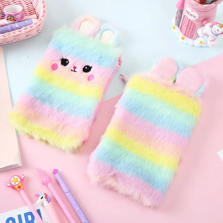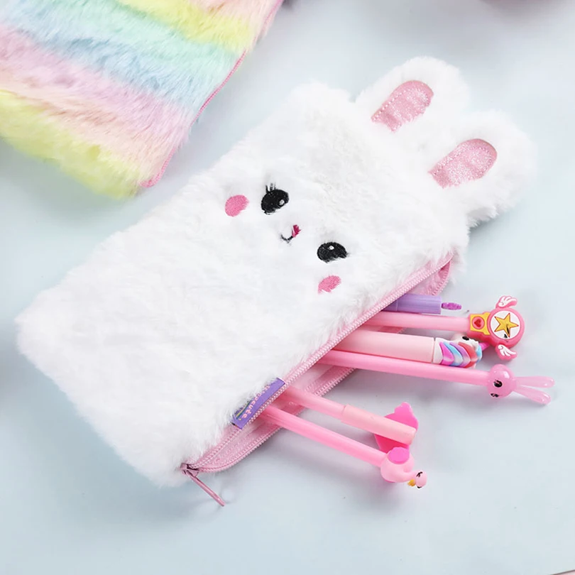 Кавайный чехол для карандаша канцелярские плюшевые Пеналы, школьные принадлежности для девочек, школьный пенал, милый пенал с заячьими ушками