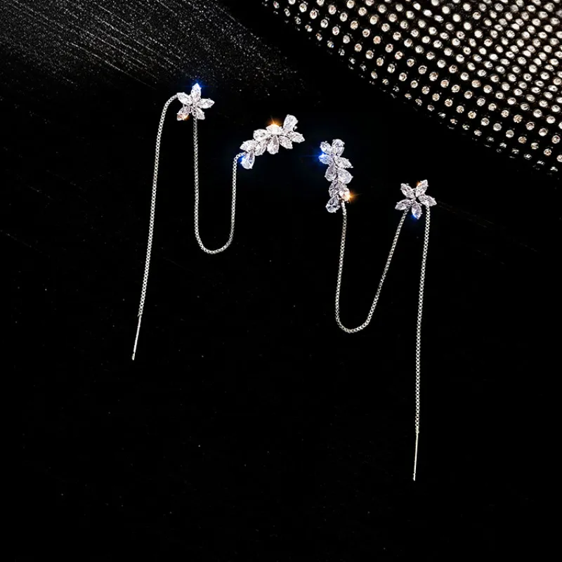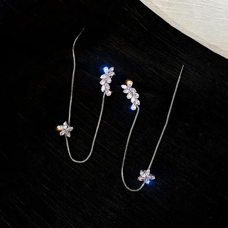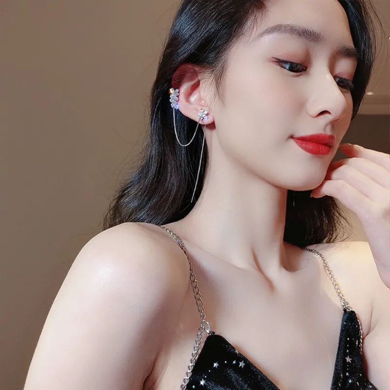 Новое поступление, модные серьги-клипсы с кристаллами и кисточками в форме водных цветов, длинные серьги, женские элегантные украшения, подарки для девушек