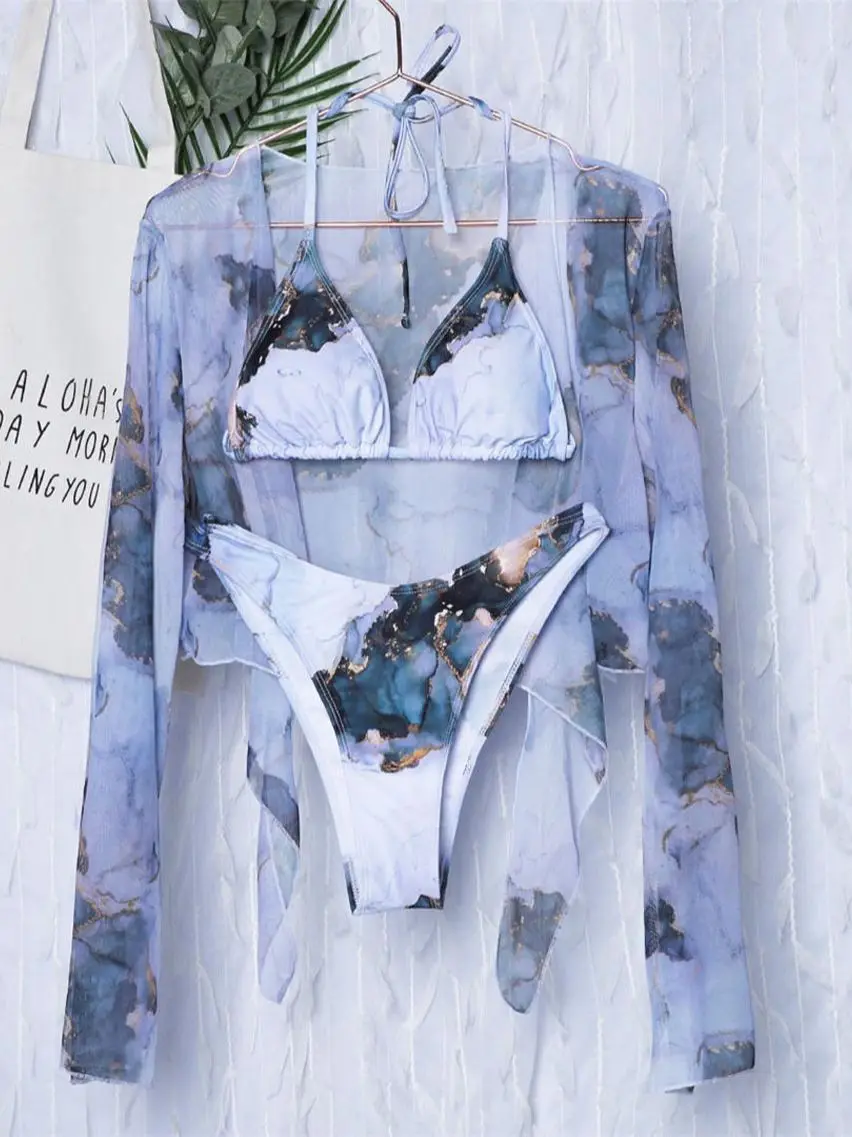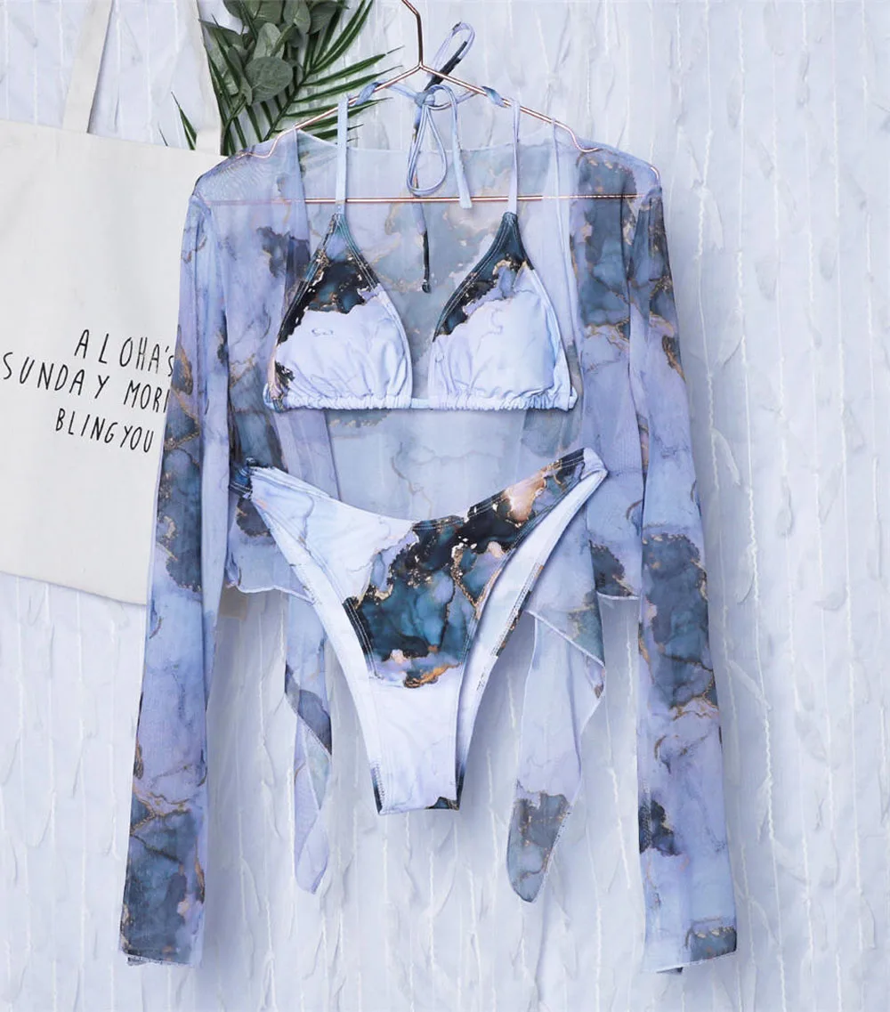 Сексуальный мраморный женский купальник с длинным рукавом, женский ...