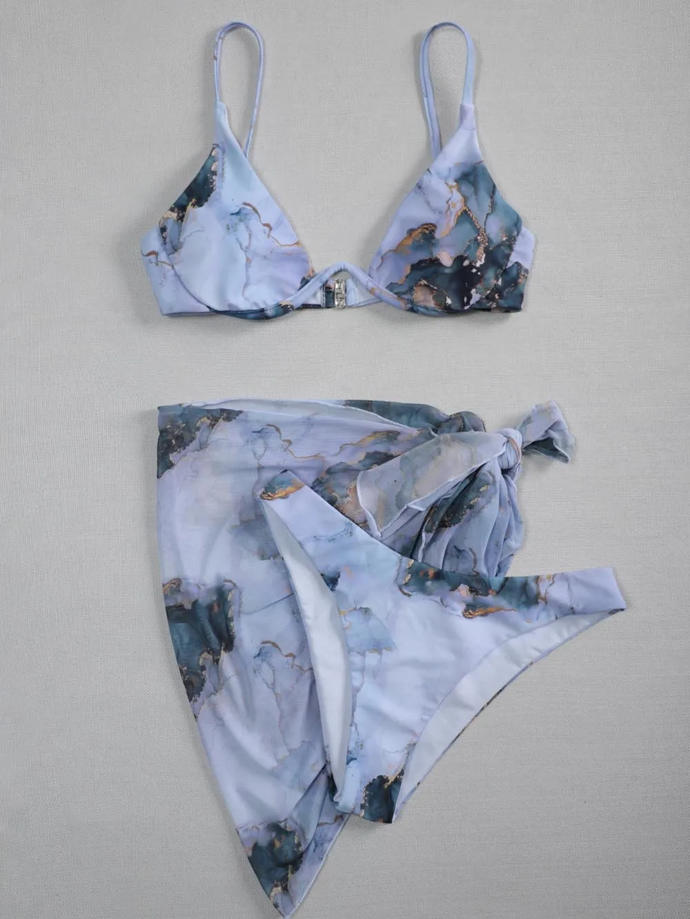 Купальник женский на косточках, V-образный вырез, купальный костюм из трех предметов, купальник-саронг