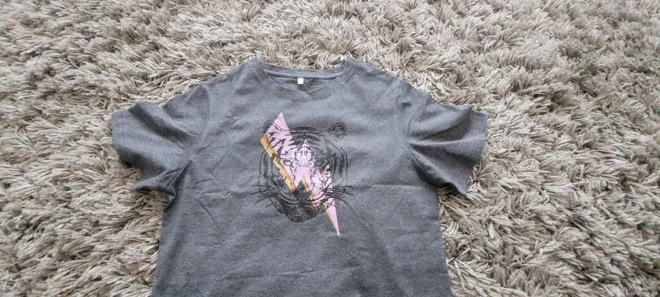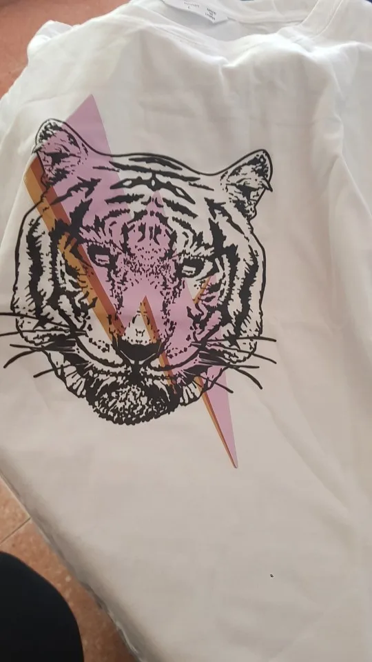 Печать рисунка идеальна, это не «наклейка», она выглядит как часть футболки ka. Хлопок хорошего качества и идеального размера