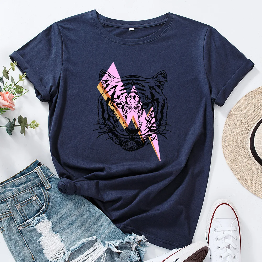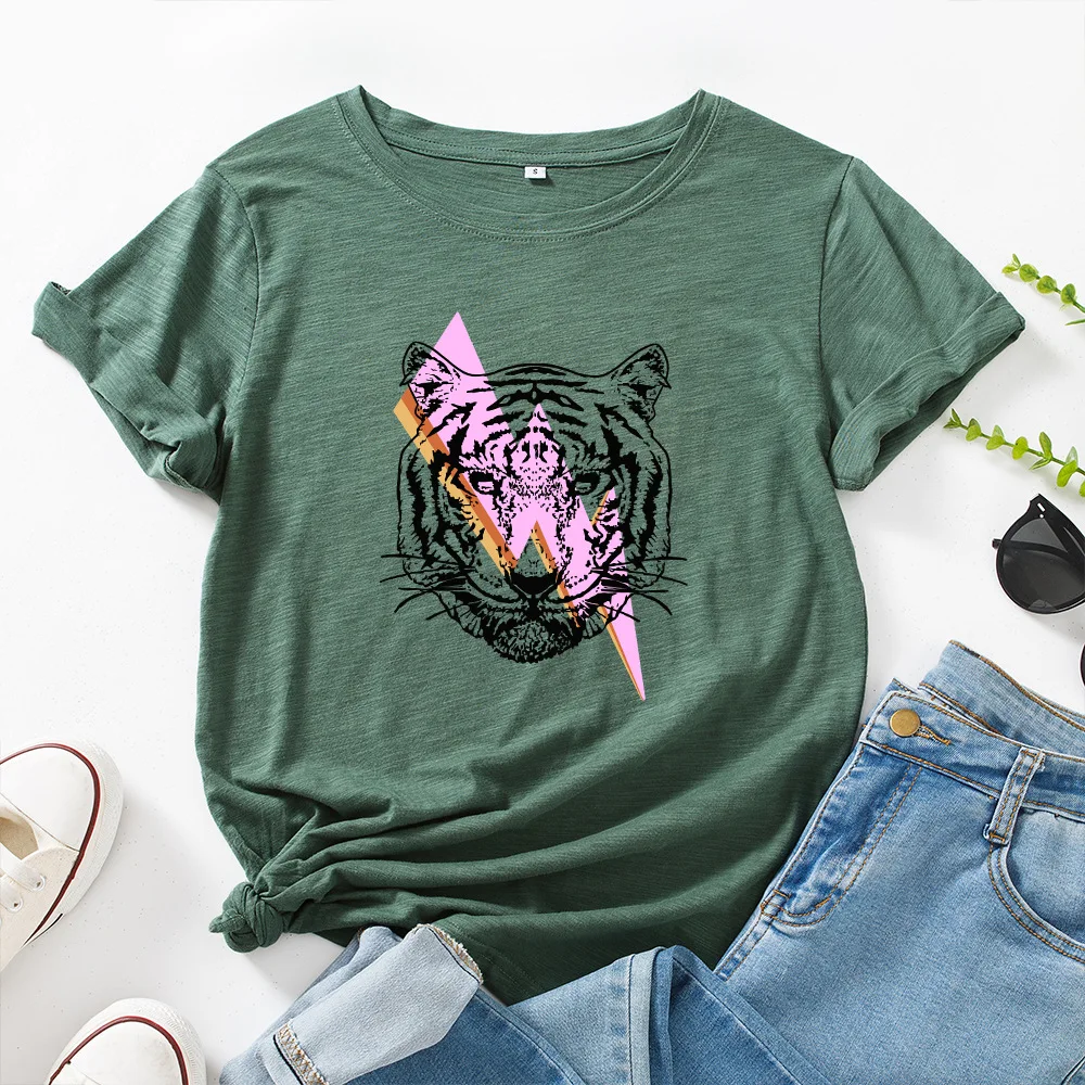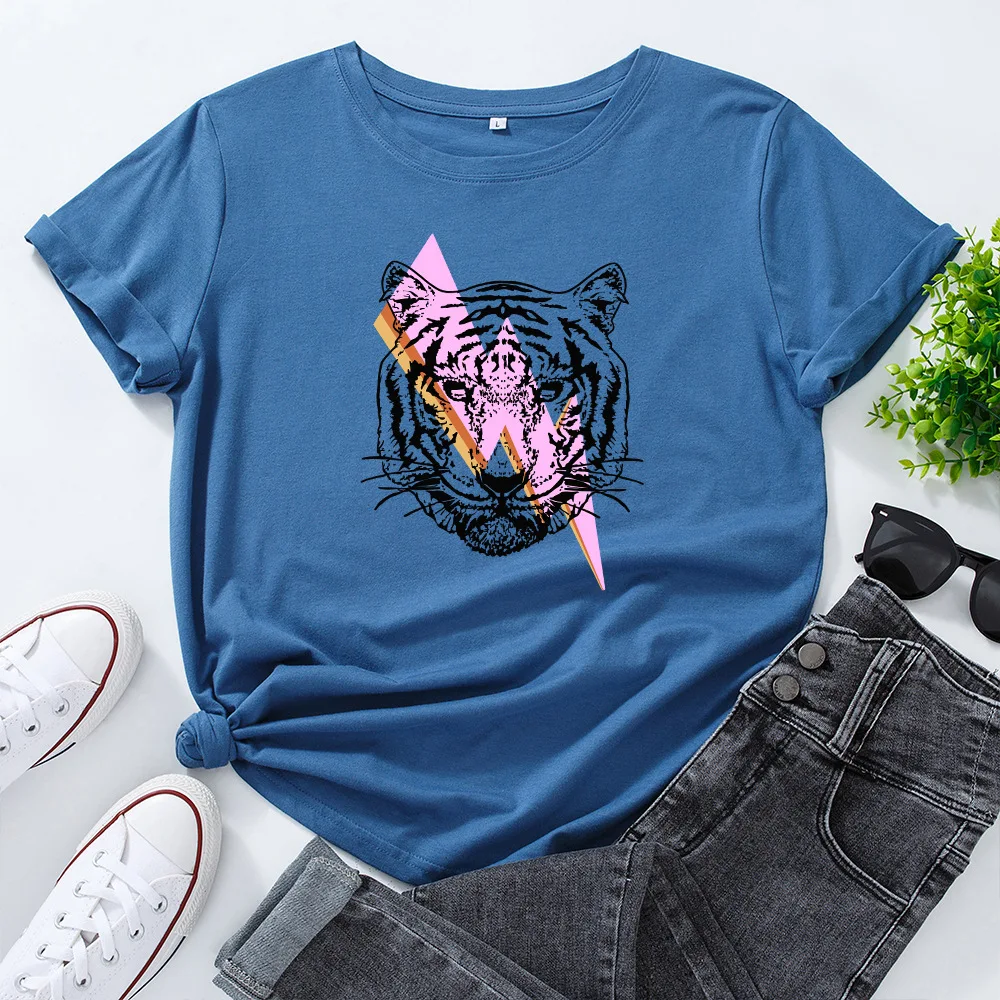Женская футболка с коротким рукавом и принтом тигра, с круглым вырезом