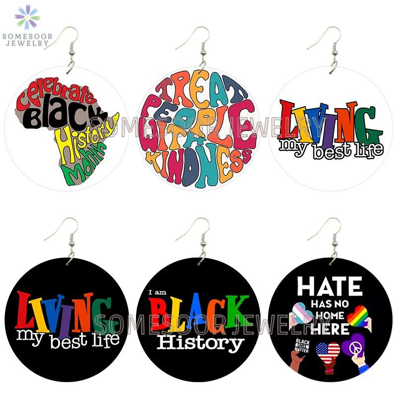 SOMESOOR черная история, африканские корни, деревянные висячие серьги, жизнь, моя лучшая жизнь, вдохновленные высказывания, печатные круги для женщин, подарок