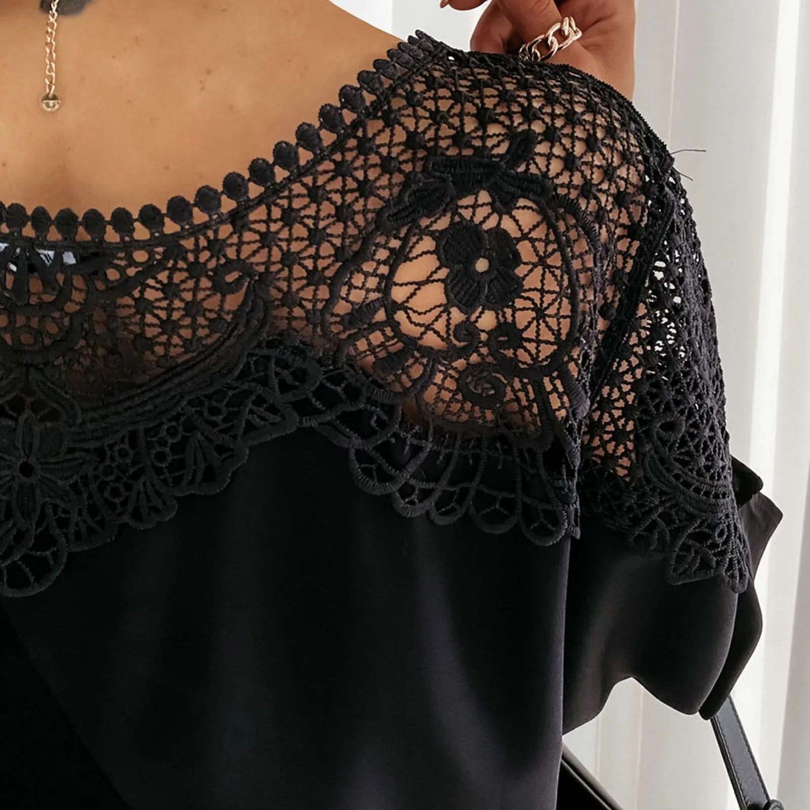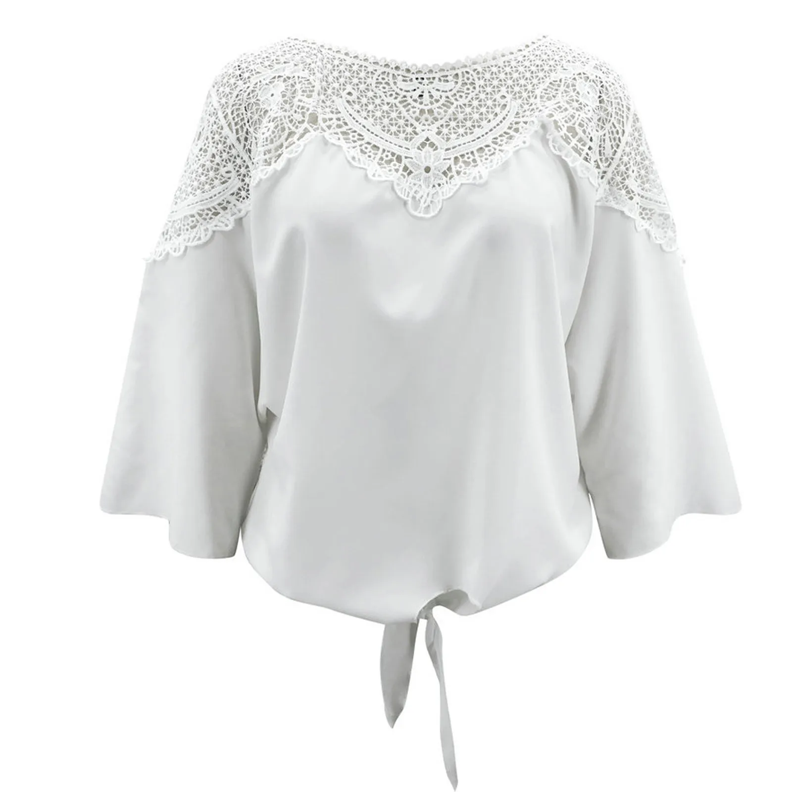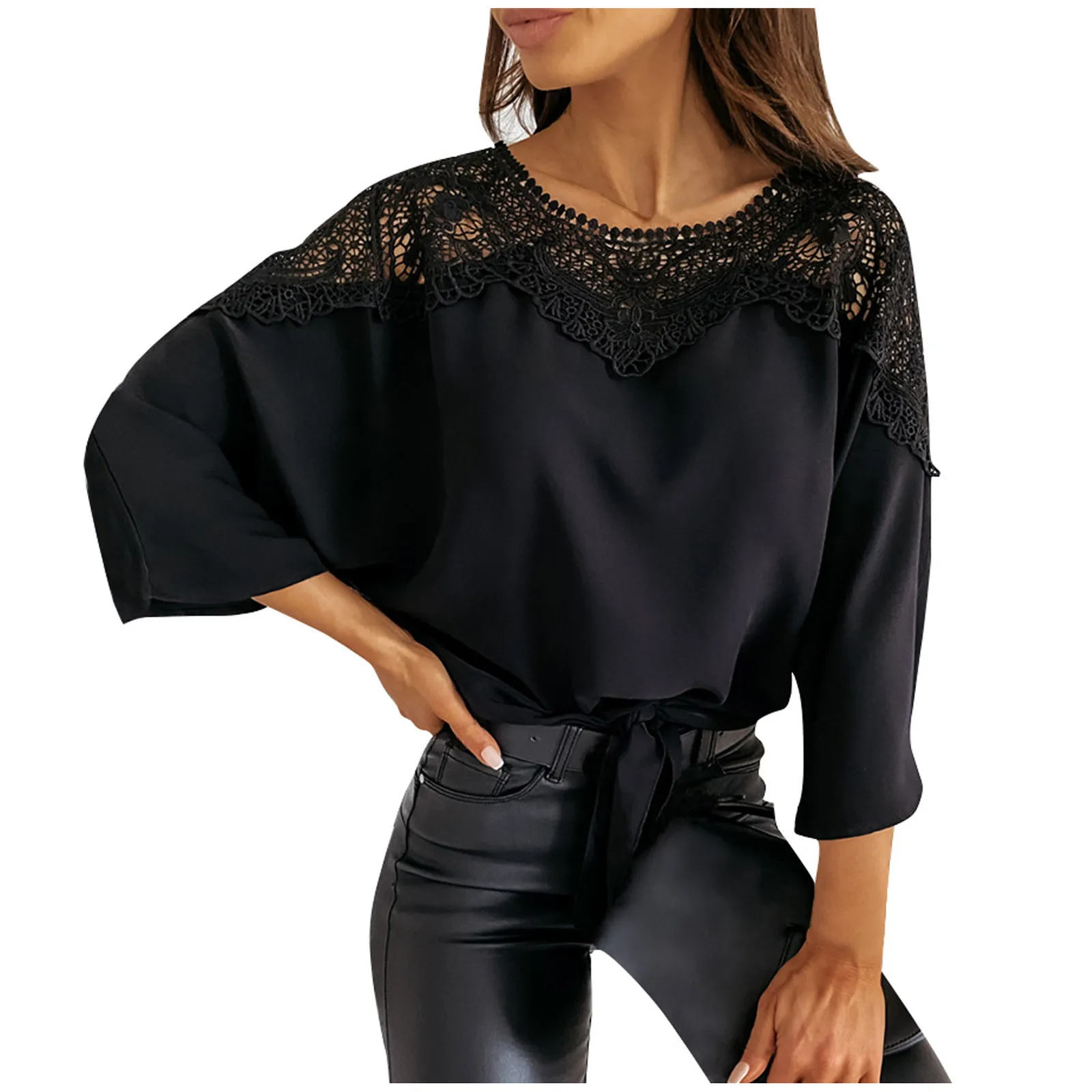 Блузка женская кружевная однотонная, элегантная бандажная Рубашка с длинным рукавом, пикантная Повседневная блузка, топ, Рубашка @ 40