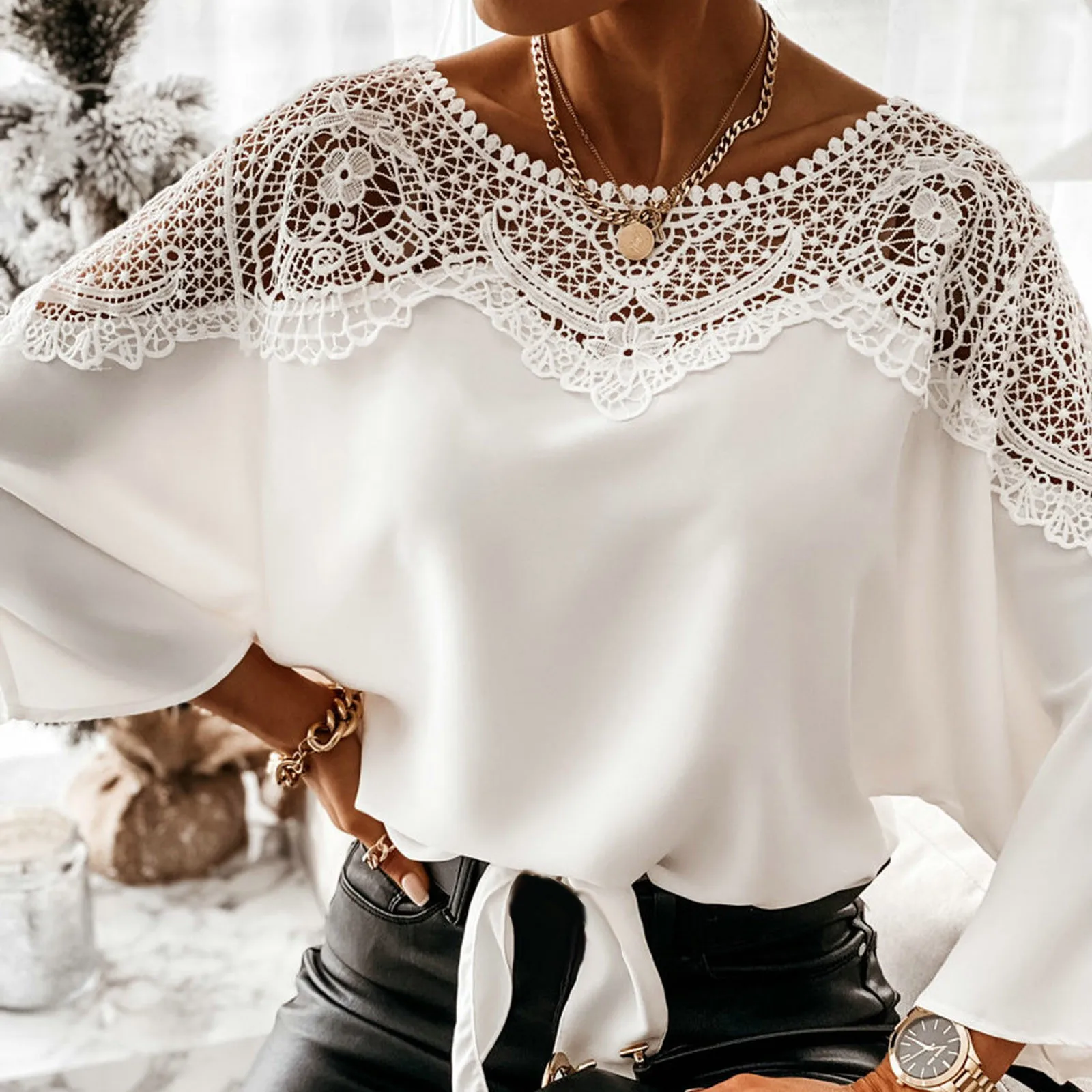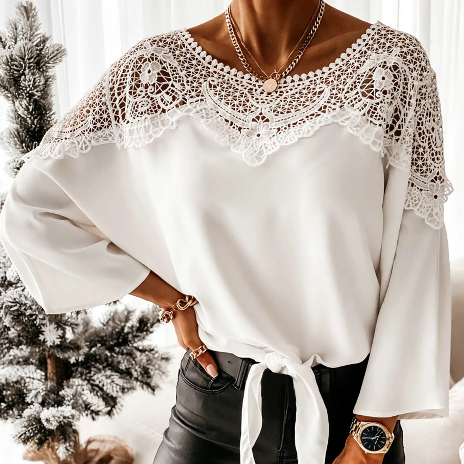 Модная женская однотонная кружевная ажурная бандажная Повседневная Блузка с длинным рукавом, топы