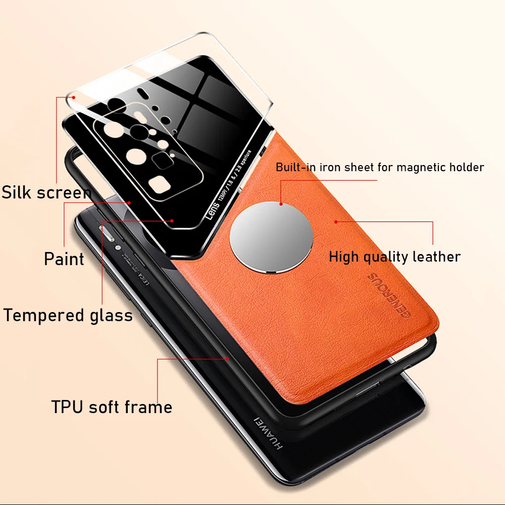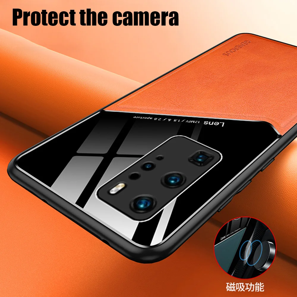 Чехол-накладка для Huawei P20, P30, P40 Lite, Pro, Mate 20, 30, 40, мобильный телефон, кожа + магнитный металлический, противоударный