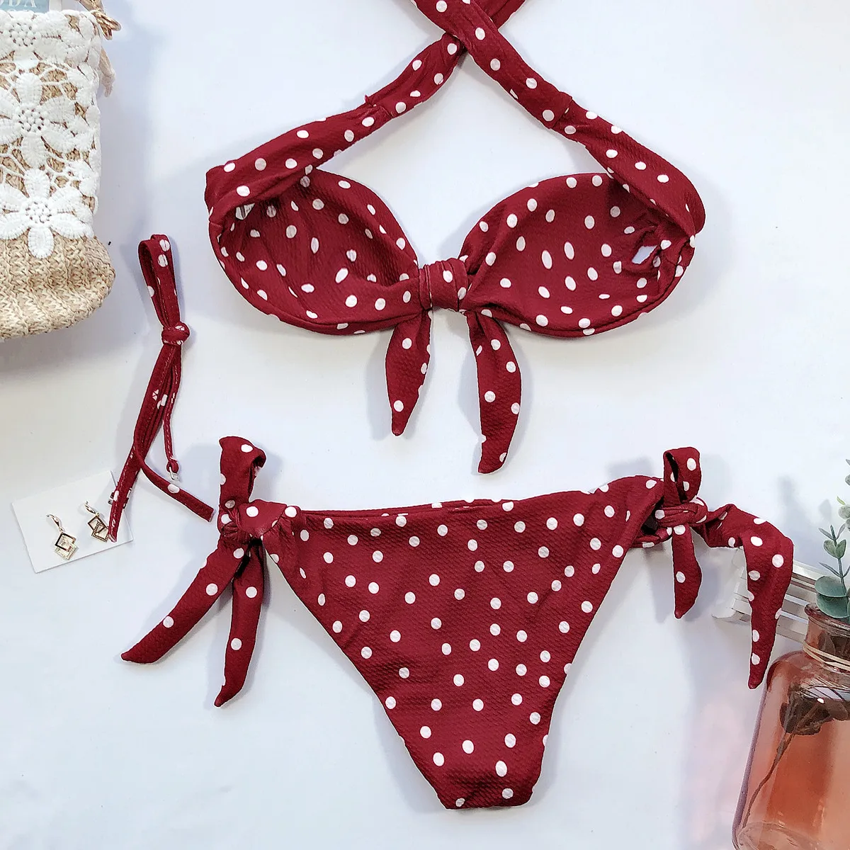 Сексуальный леопардовый принт бикини в горошек купальник с узлом купальники женские бикини женский купальный костюм