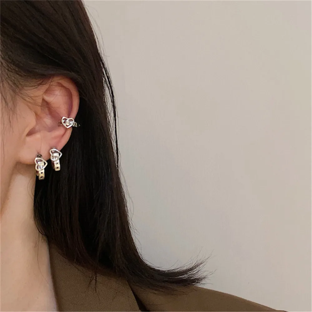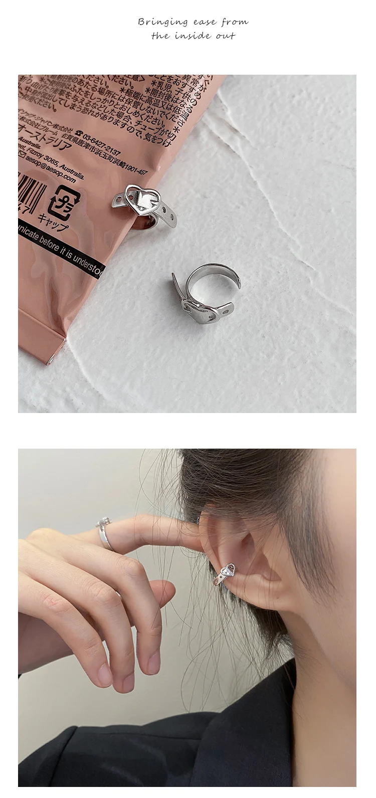 Серебряный Цвет; Симпатичные тапочки с узором в виде ремень клип серьги для женщин в стиле панк Мини милый виде незаполненного круга Heart Beat ремни с квадратными кристаллами вечерние свадебные украшения A941