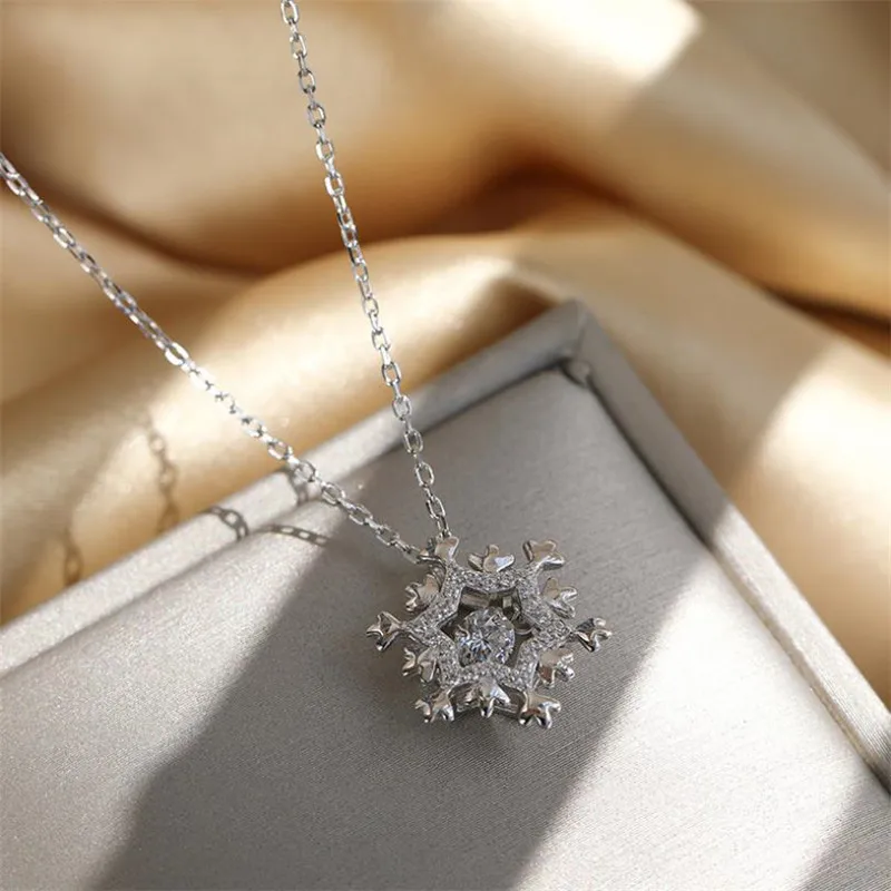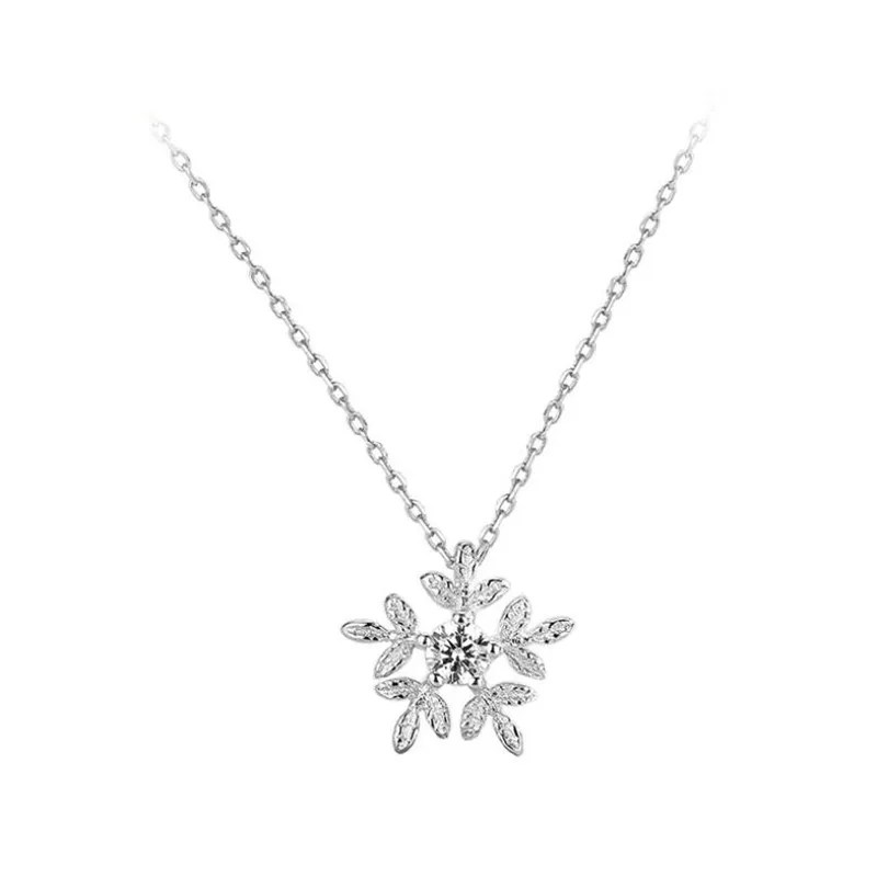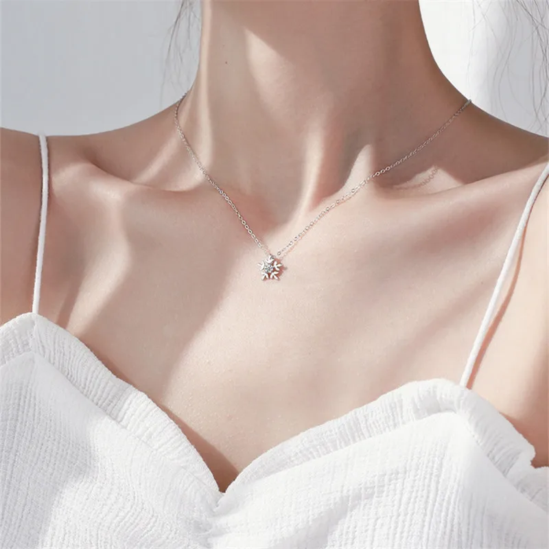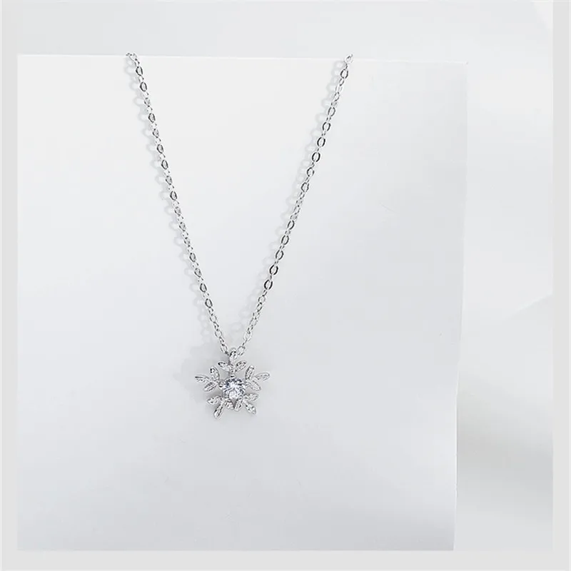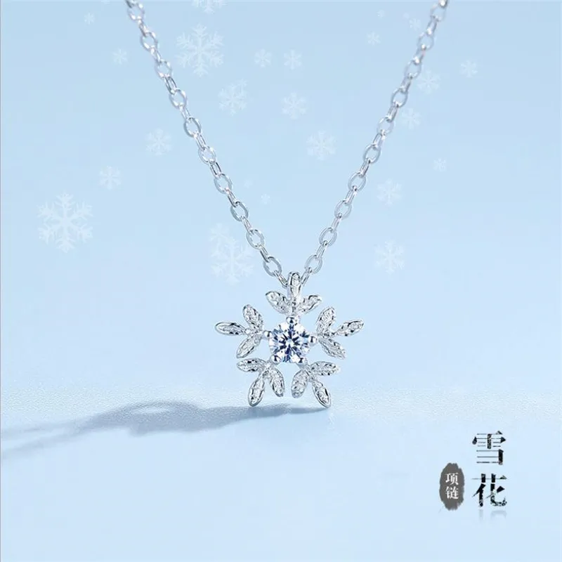 100% Серебро 925 девушка Колье женское ювелирное изделие яркая Хрустальная подвеска Снежинка ожерелья Женские аксессуары для ключиц