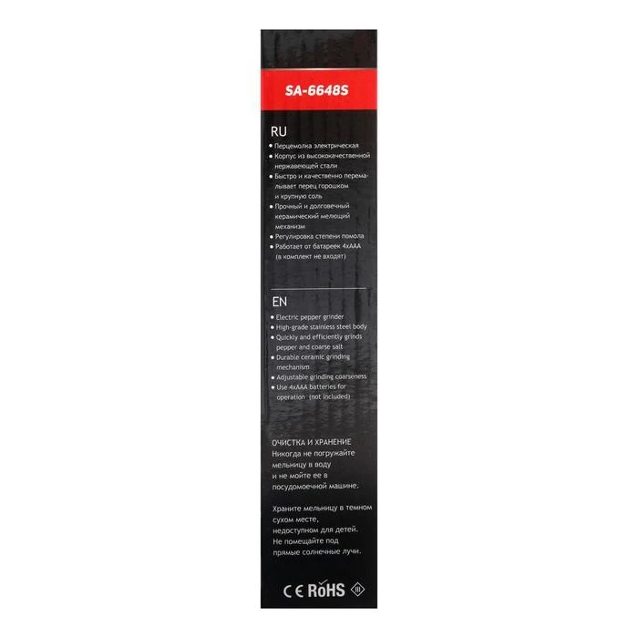 Мельница электрическая Sakura SA-6648S, подсветка, питание от 4хААА, нержавеющая сталь 5473688