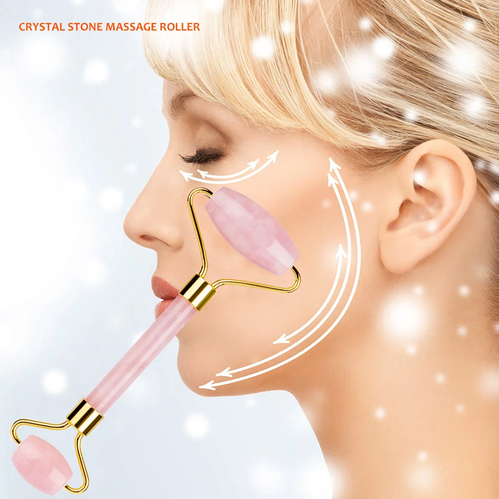 Натуральный розовый кварц, ролик для массажа лица, двойная головка,...